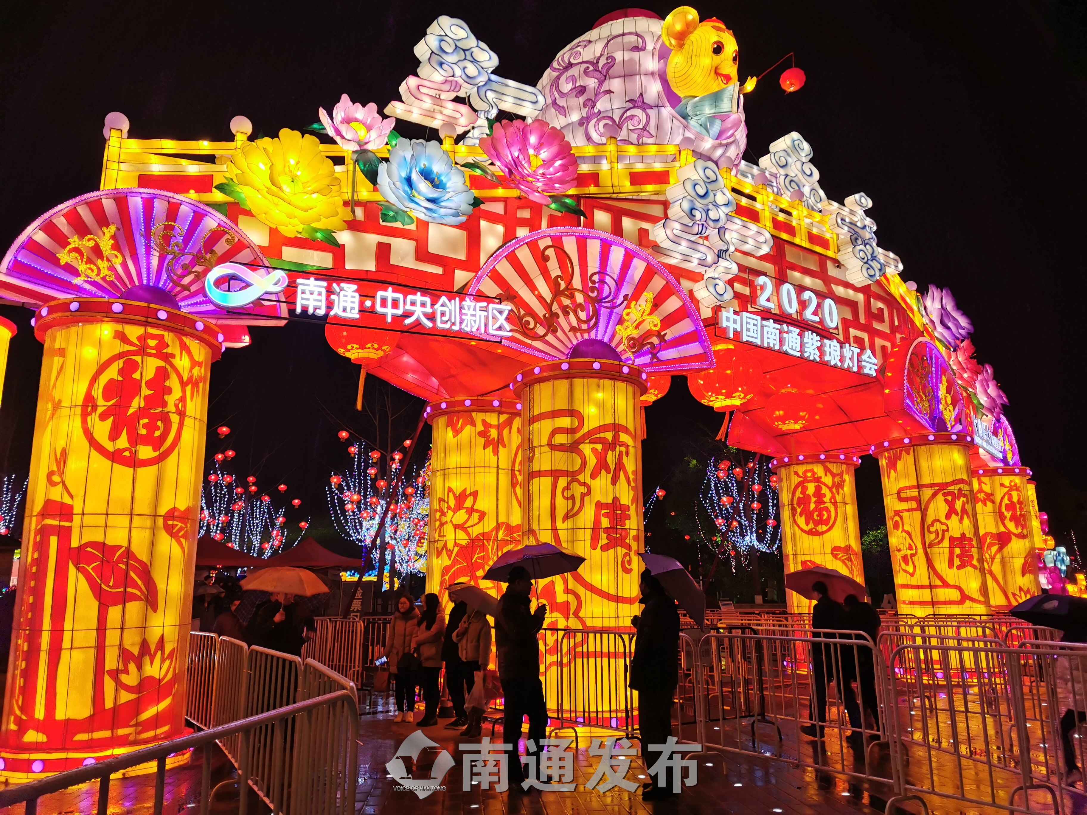 尽管通城微微细雨,但灯会还是吸引了近万名游客入园观赏。据了解,“2020中国南通紫琅灯会”是南通与自贡文化领域的一次交流与碰撞。在新春佳节即将来临之际,将蜚声中外的“国家级非物质文化遗产”自贡灯会请进南通中央创新区,意在培育具有南通地方文化特色的彩灯节庆品牌,让游客能够真正观赏到一台集聚传统文化、地域特色和时代精神元素的彩灯艺术盛会,同时亲身领略中创区阶段性开发建设的形象和成果,让春节过得更有新意。