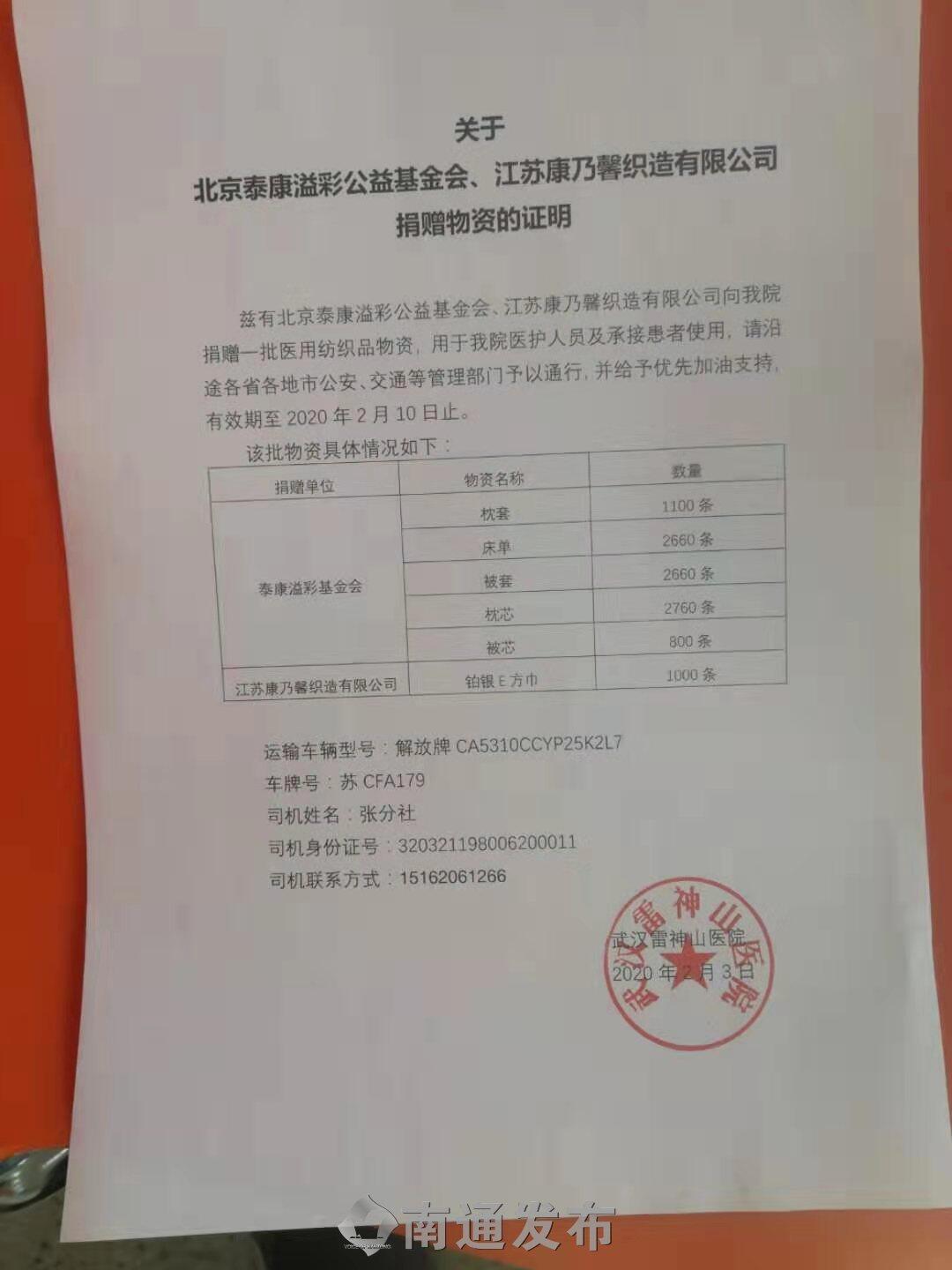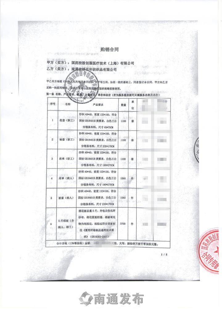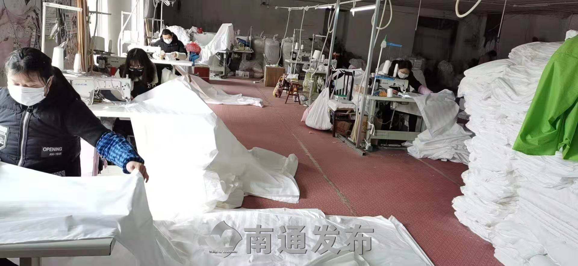 记者了解到,我市通州区区委区政府相关部门、张芝山镇党委镇政府相关部门、张芝山工业园区、当地防疫指挥领导小组等方方面面,了解到宣娇百年纺织品有限公司承接受国家卫健委委托、由国药控股公司无偿向武汉雷神山捐赠医用纺织品生产紧急任务后,立即立足防控疫情大局多方协商,最终,在申办有关手续后,促成涉事公司迅速开工生产。