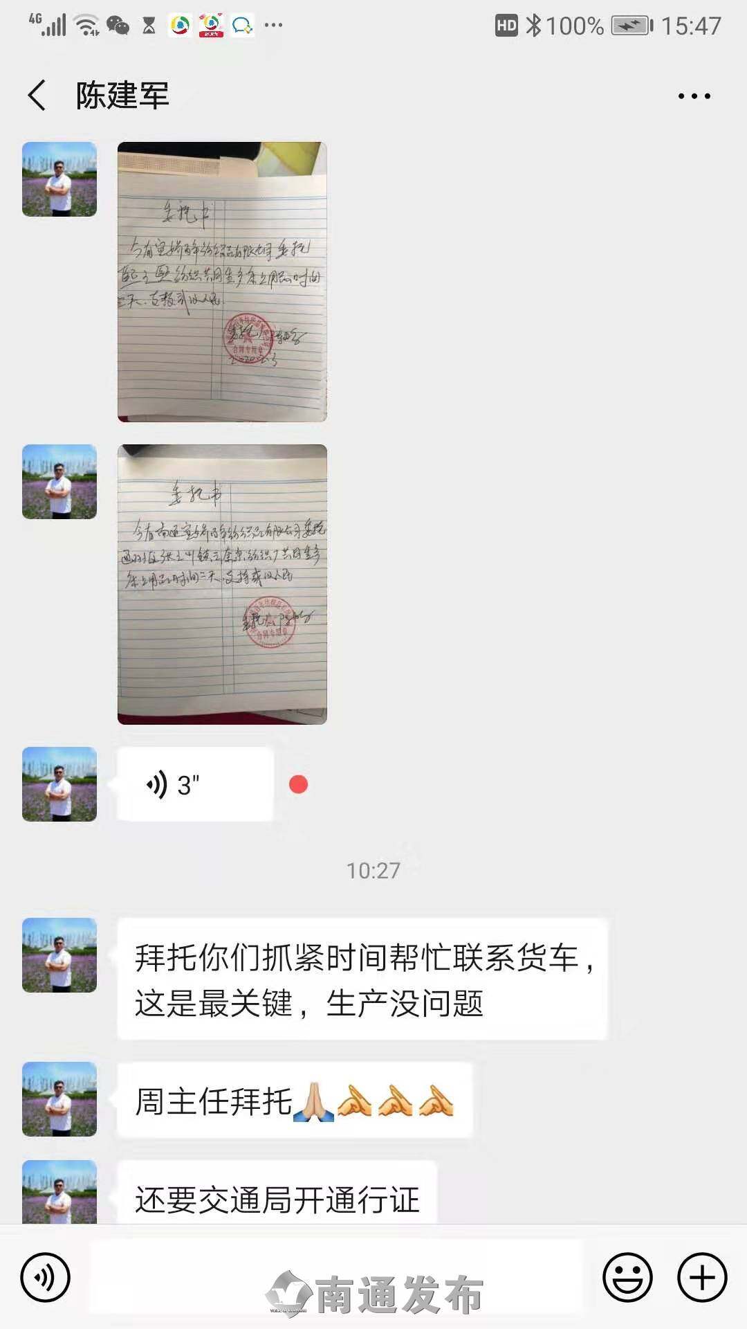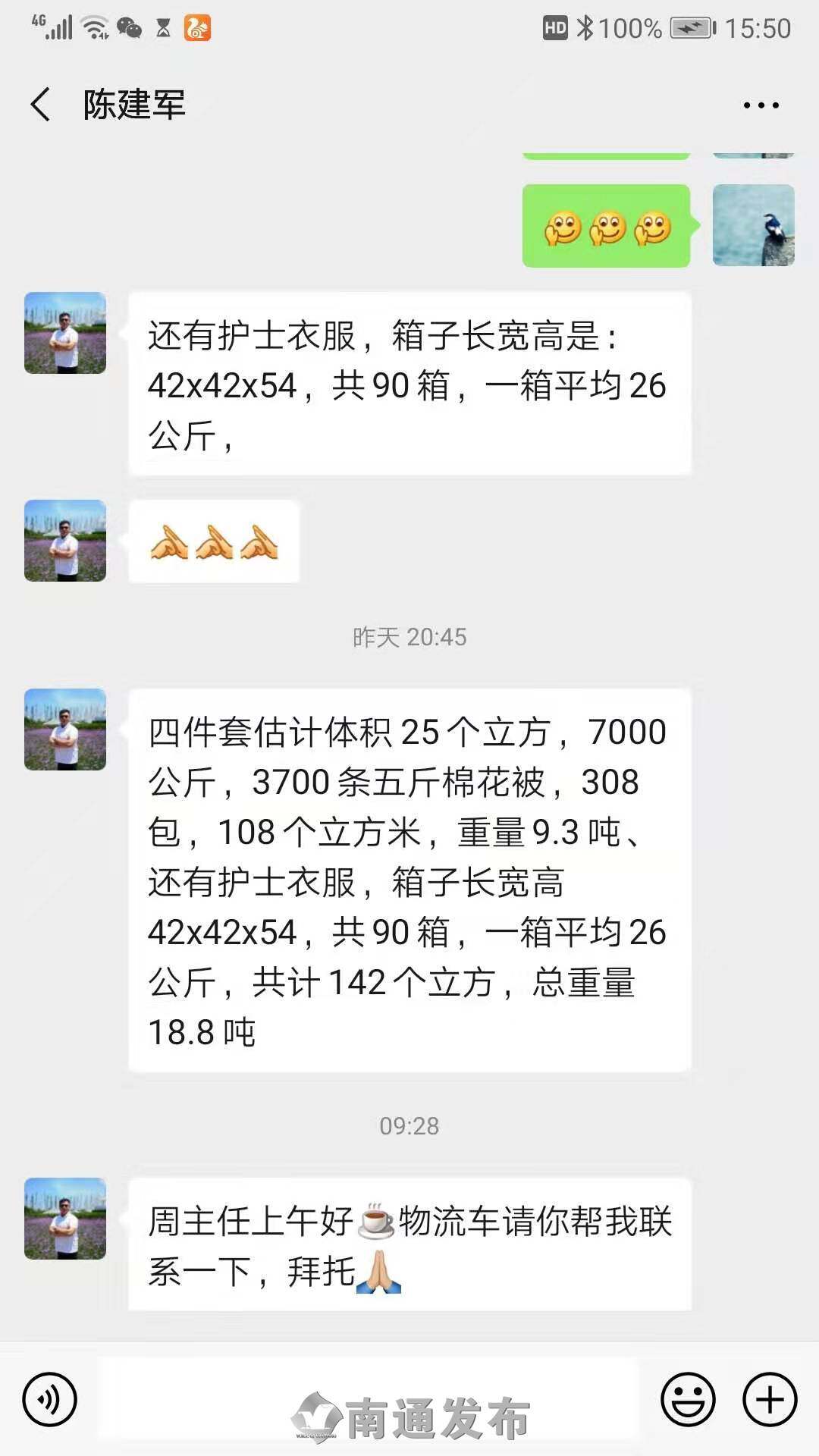 组织工人火速开工加班加点赶制医用纺织品的难题解决了,可是,同样受我市防控冠状病毒感染的肺炎的重大战役影响,陈建军和他的公司又遇上产品及时发往武汉雷神山医院的物流运输难题,并再次向南通报业集团求助。