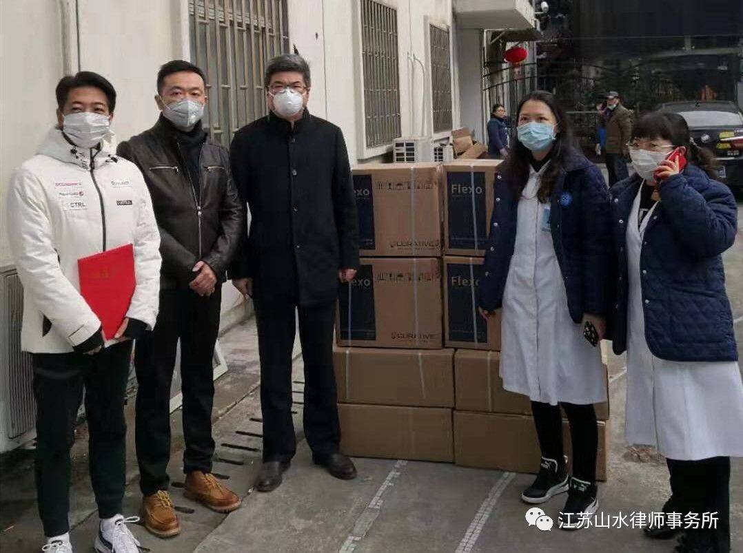 江苏江花律师事务所是第一批行动起来的。在知悉武汉医院紧缺各类医疗物资后,全所律所共捐款37868 元,购买了980副医疗护目镜,分三批捐给武汉医院;江苏山水律师事务所发出倡议后7个小时,全所72人全员捐款,采购了价值近40万元的4台无创呼吸机,捐赠给通大附院。
