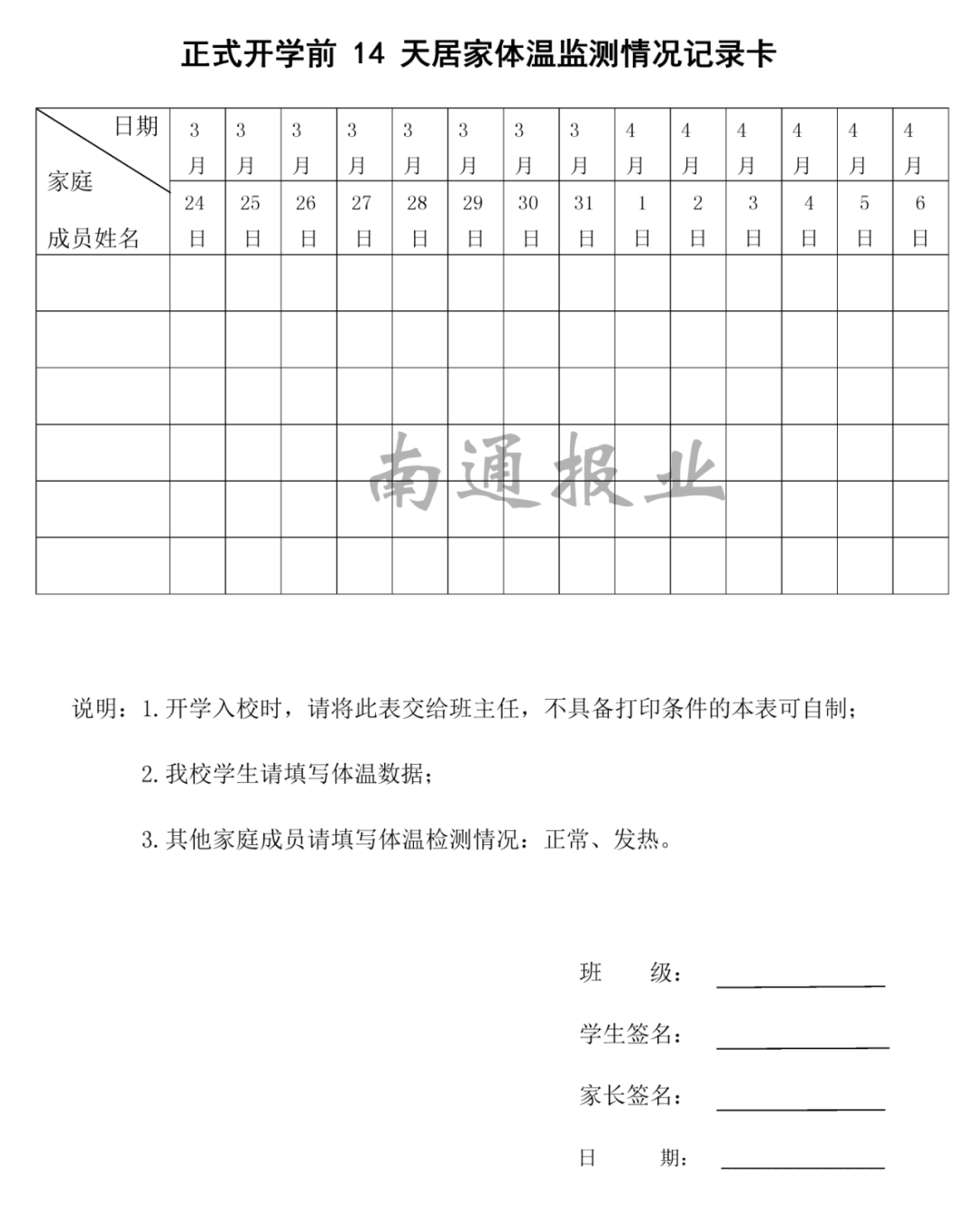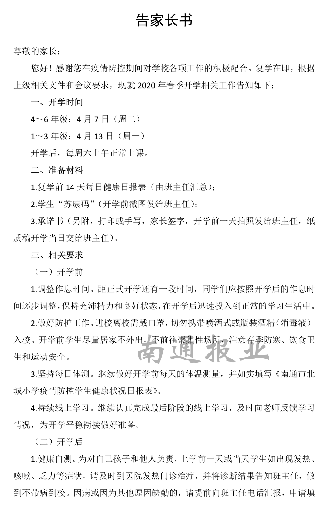 填写“承诺书”(样稿见附件五)。以上材料请按要求,四到六年级在4月3日上午(一到三年级在4月10日上午)电子表发给班主任老师,以方便学校审核。开学当天将纸质表交班主任。