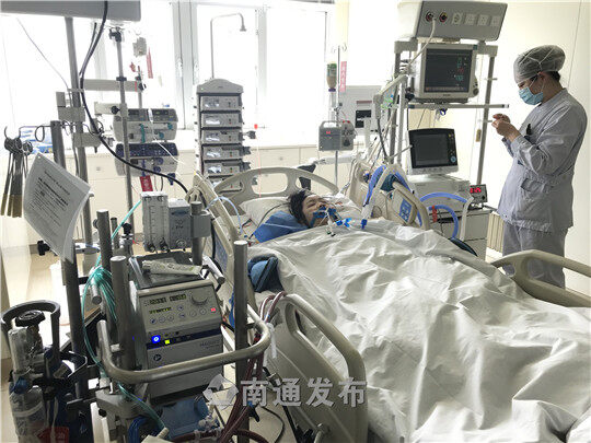 4月14日早上,启东32岁的郭女士,在爬了一段楼梯后觉得胸闷、胸痛,大约十分钟后突发晕厥、意识不清,被人及时发现后送到启东市人民医院救治,以“心源性休克、暴发性心肌炎”入院抢救。在进行了升血压、氧疗等紧急治疗后仍循环不稳定,需要大剂量升压药维持血压,考虑到患者病情来势凶猛,情况危急,随时可能发生心跳停止,启东方面向南通大学附属医院提出会诊请求。