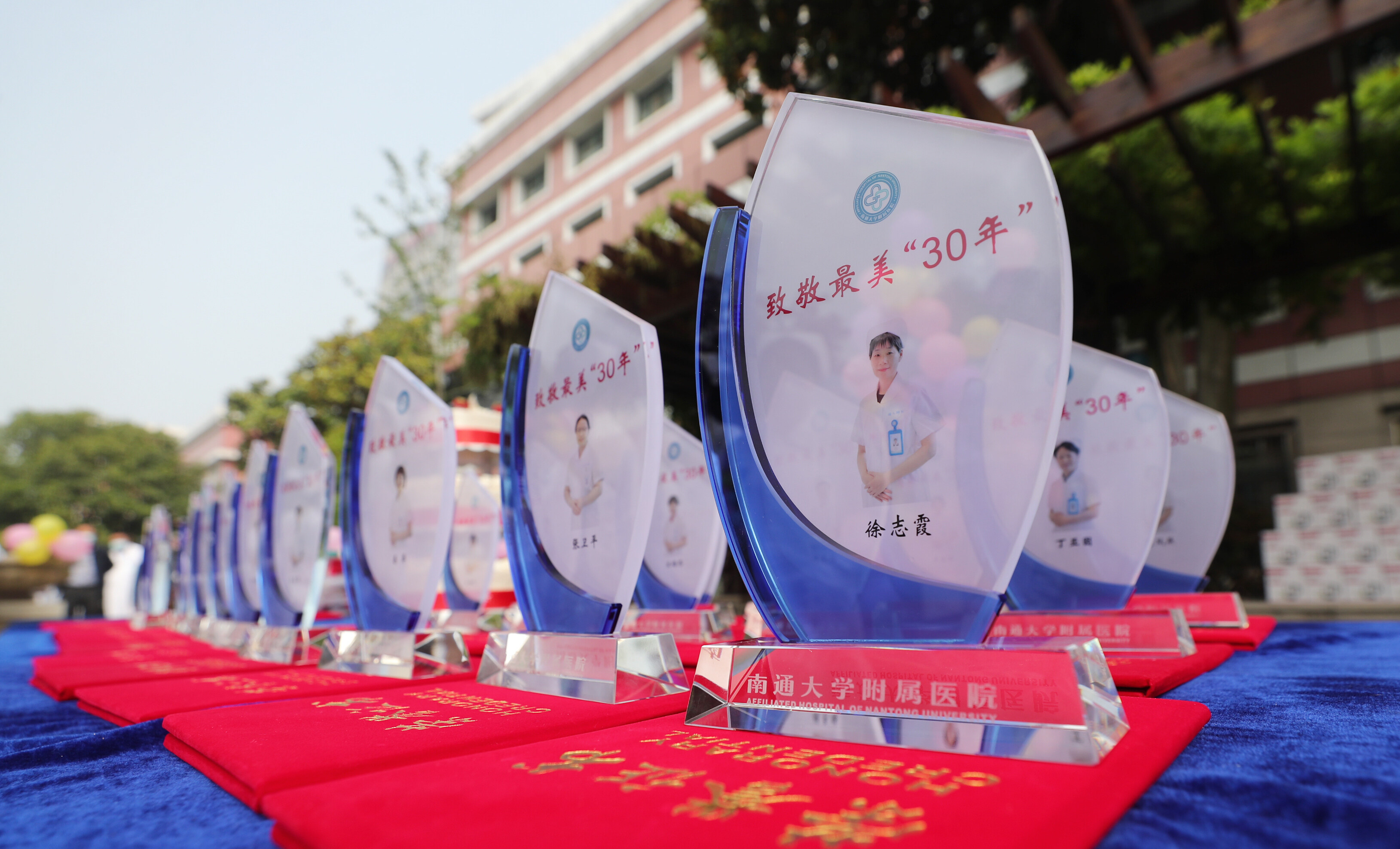 云霞开锦绣,万物启芳华。11日,在通大附院举行了一场别具一格的“5A级花园式”庆典活动,以此来庆祝第109个国际护士节到来。在活动中,该院28位已在护理岗位坚守30年的白衣天使们,收到了鲜花、蛋糕、特别定制奖杯以及证书。该院全体院领导,及院办、党办、工会、宣传部等部门负责人,护理部督导督办专员、科护士长等近百人参加活动。