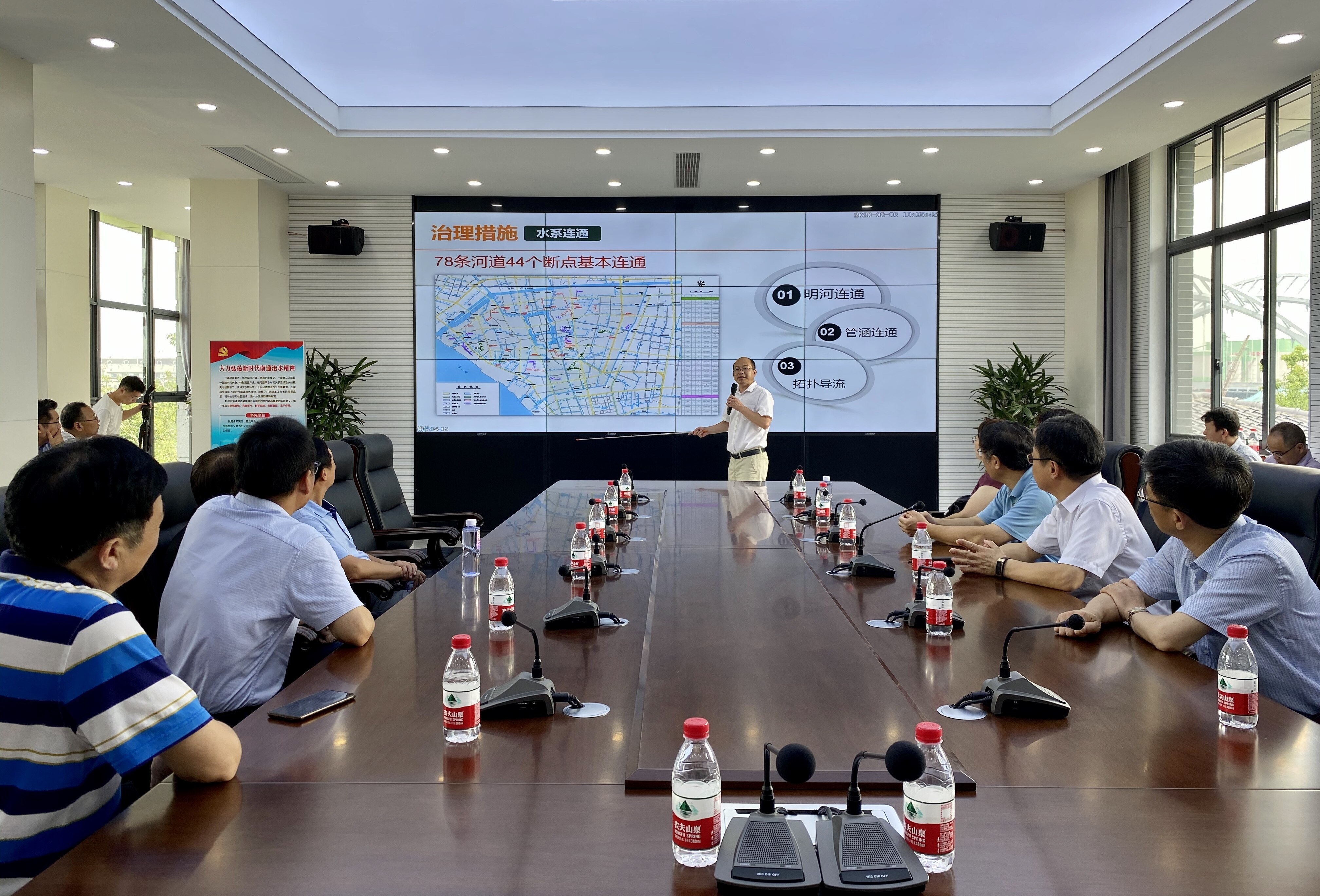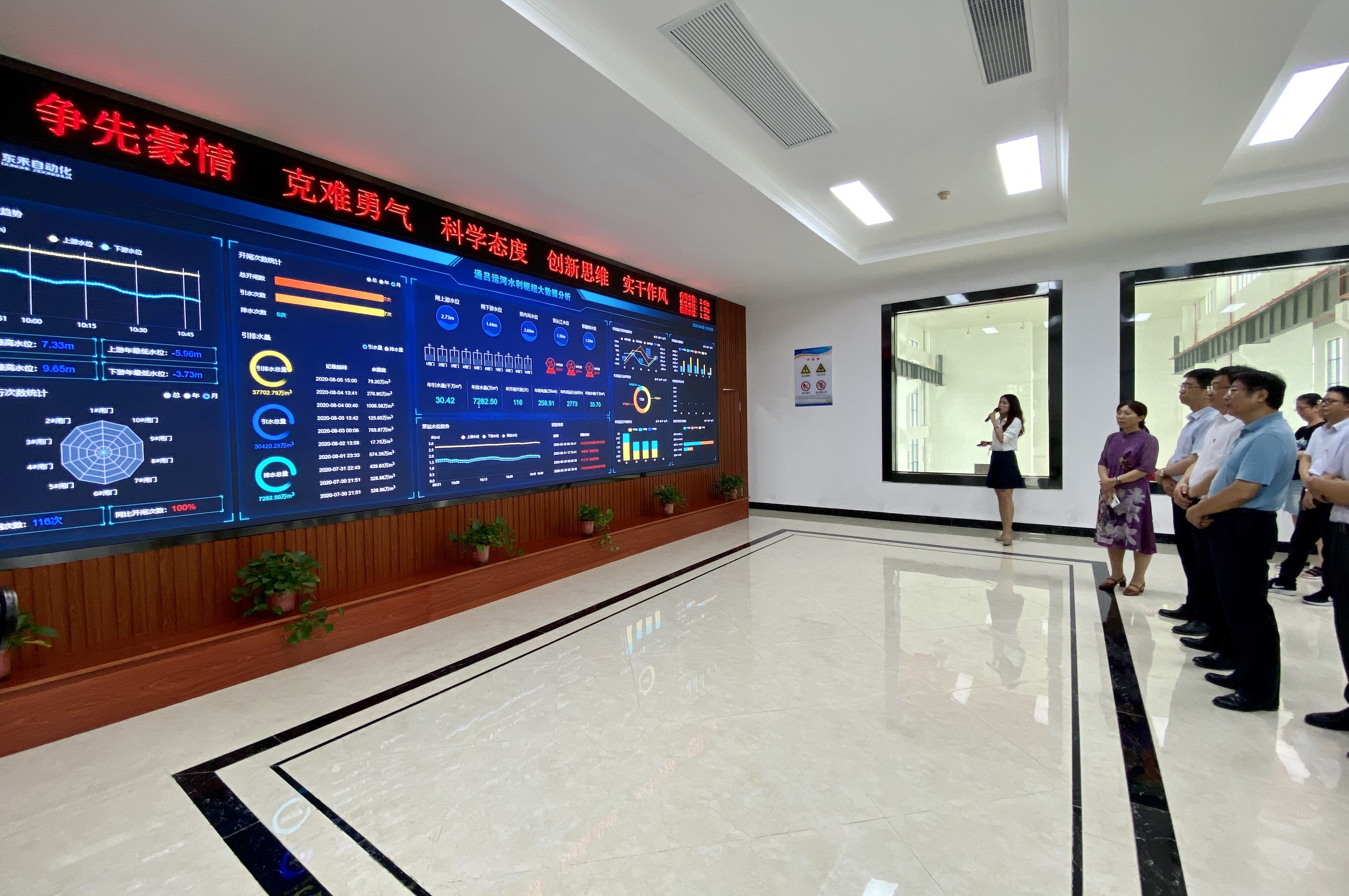 走进通吕运河水利枢纽工程控制中心,三台机组已全部开机,正在全力排水。通吕运河水利枢纽工程是南通市首座闸站一体设计施工建设的大型水工建筑物,该工程于2018年10月底施工,2019年5月通过水下验收,同年12月底试运行。工程任务之重、强度之高、压力之大、计划工期之紧在江苏水利建设史上前所未有。