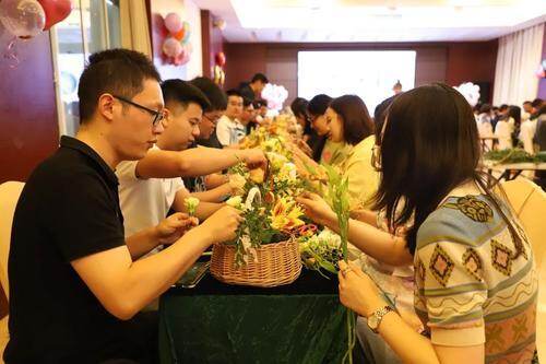 到了插花互动环节,嘉宾们在老师的指导下,纷纷拿起手中的鲜花,有模有样地学起来。简单的插花,打破了彼此的沉默,美丽的花束,也寄予了青年们对未来美好生活的期望。