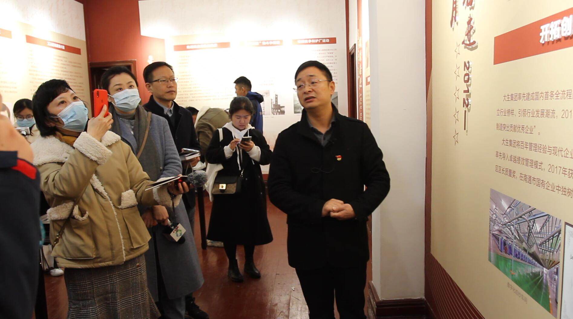 融媒体采访团在大生集团听取红色故事。