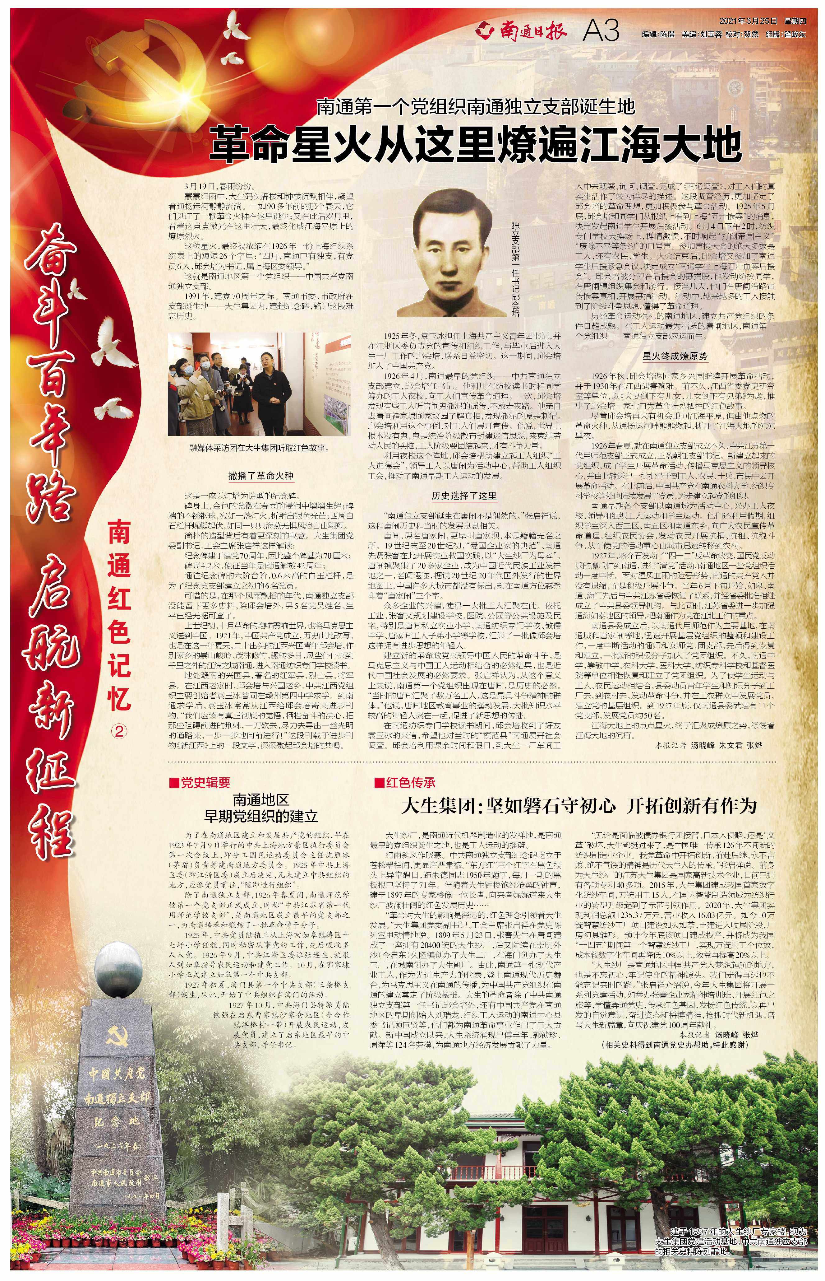 (相关史料得到南通党史办帮助,特此感谢)