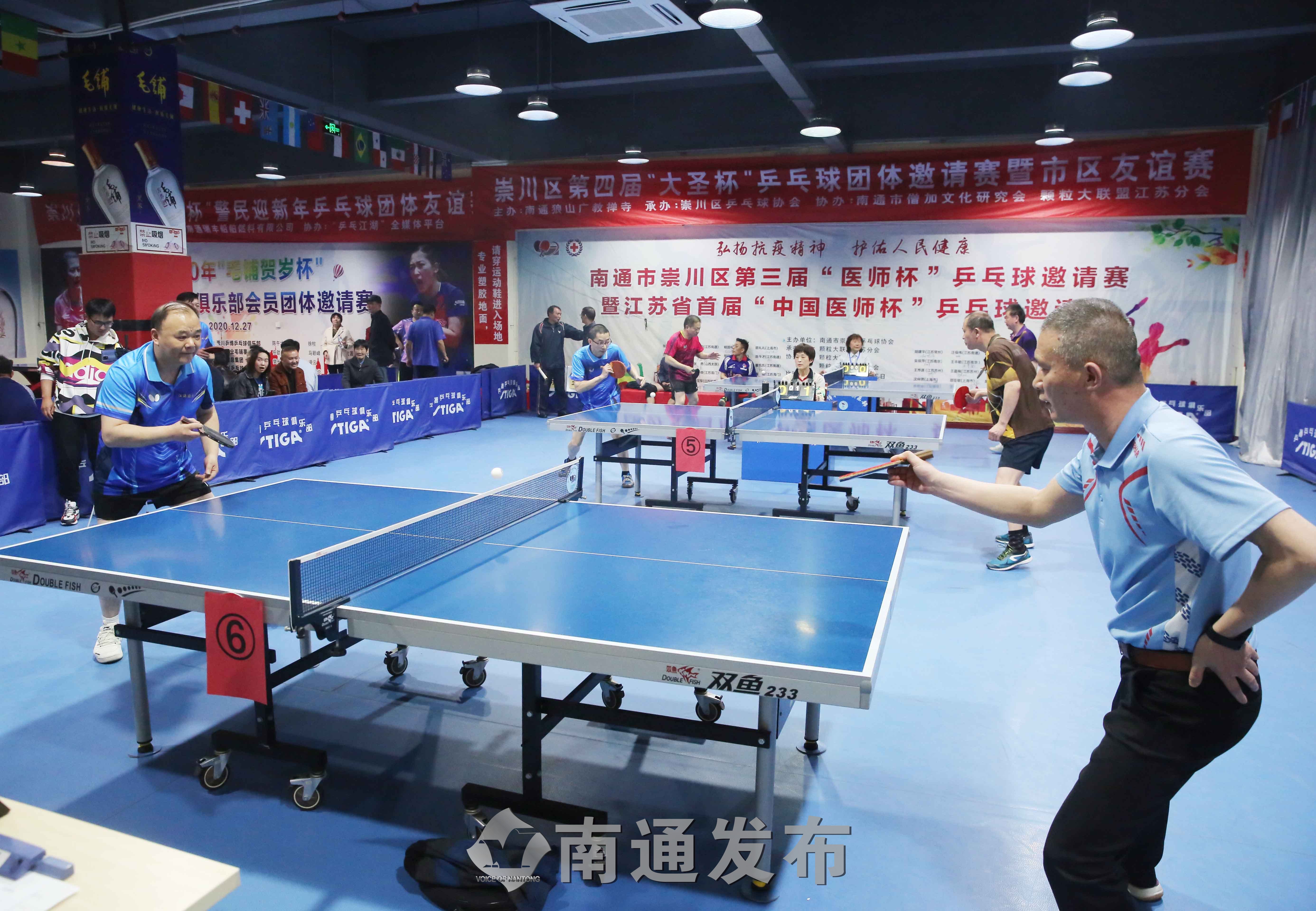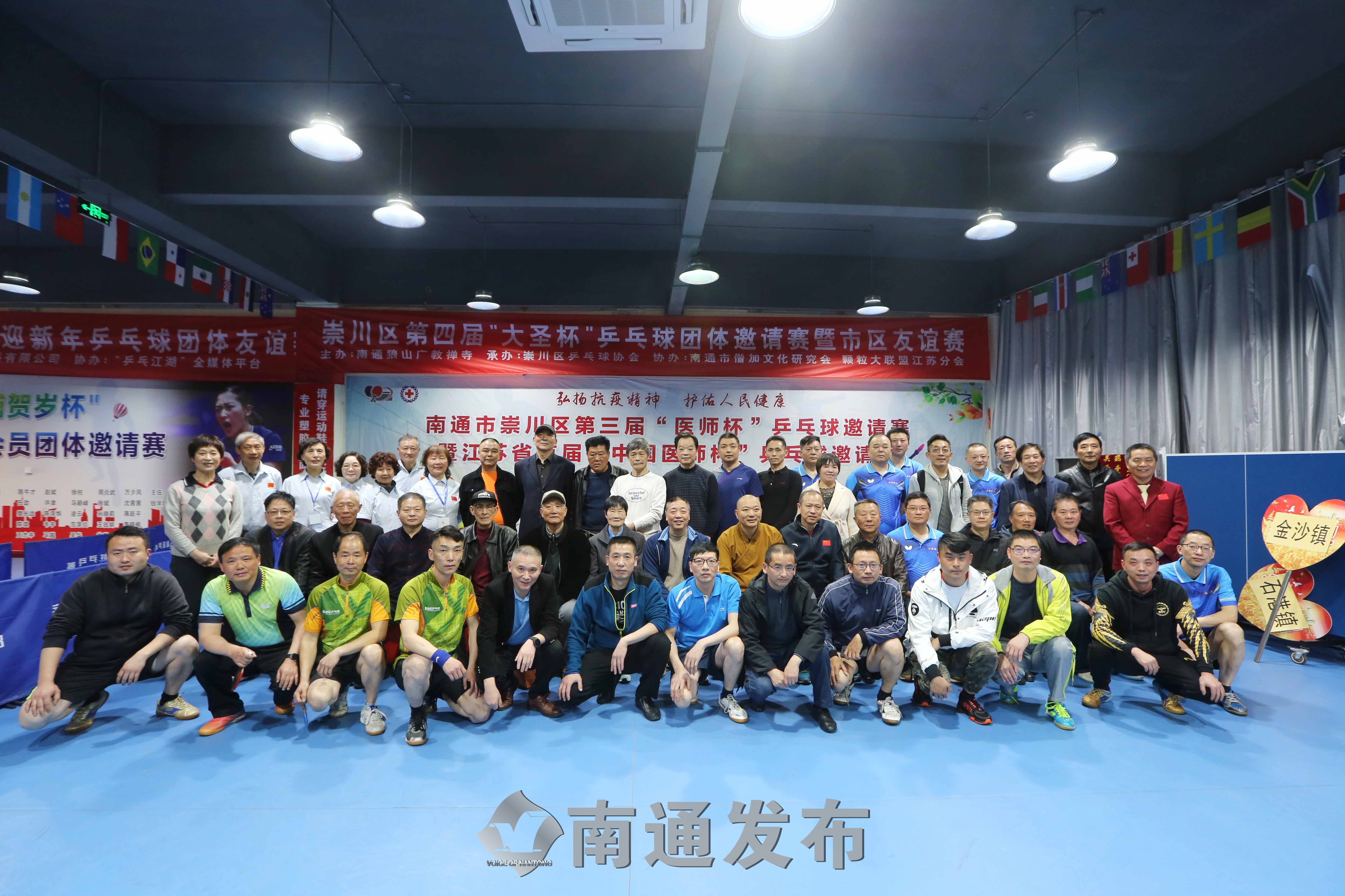 僧伽文化搭台,乒乓好手唱戏。今天,崇川区第四届“大圣杯”乒乓球团体邀请赛暨市区友谊赛在乒博乒乓球俱乐部举行,来自崇川区、通州区的40多名业余好手欢聚一堂、切磋球艺。
