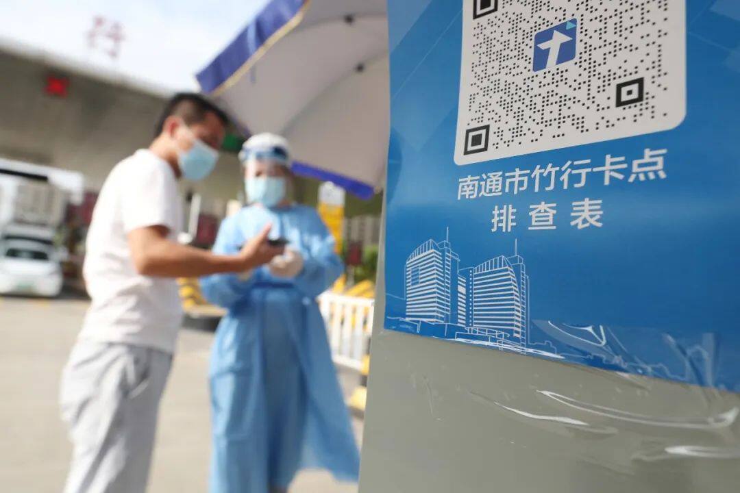 8月11日早晨7:50,在G15沈海高速竹行收费站,执行疫情防控任务的志愿者、通大附院港闸富民中心主任丁霞正在查验来自上海的几名驾乘人员的行程码与苏康码。此时她与同时志愿者的通大附院事业拓展与对外合作处杜欣怡、监察处汪首文一起在竹行卡口值守了夜班。而此时,接替他们的通大附院另外三名志愿者已在一旁等候交班。