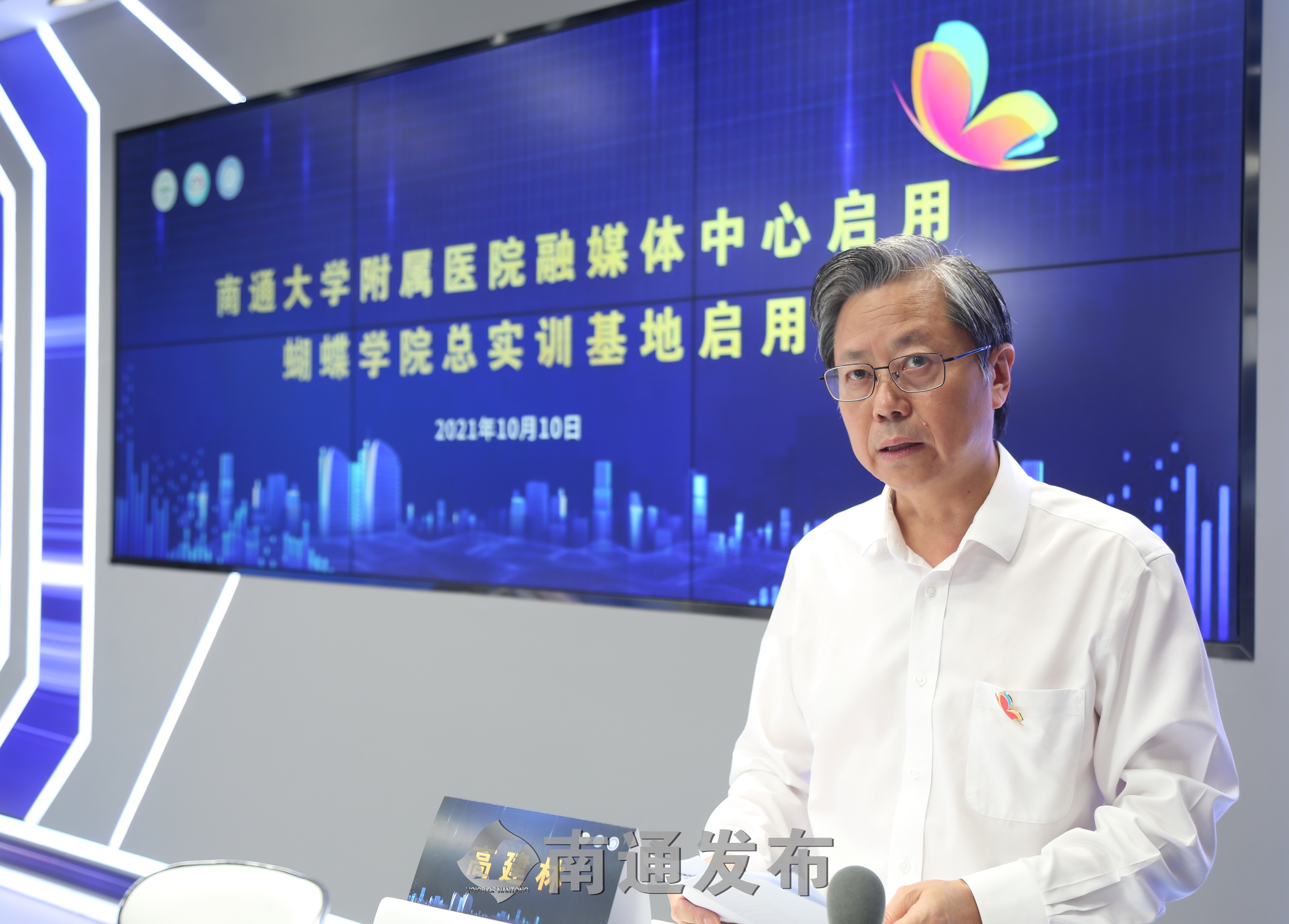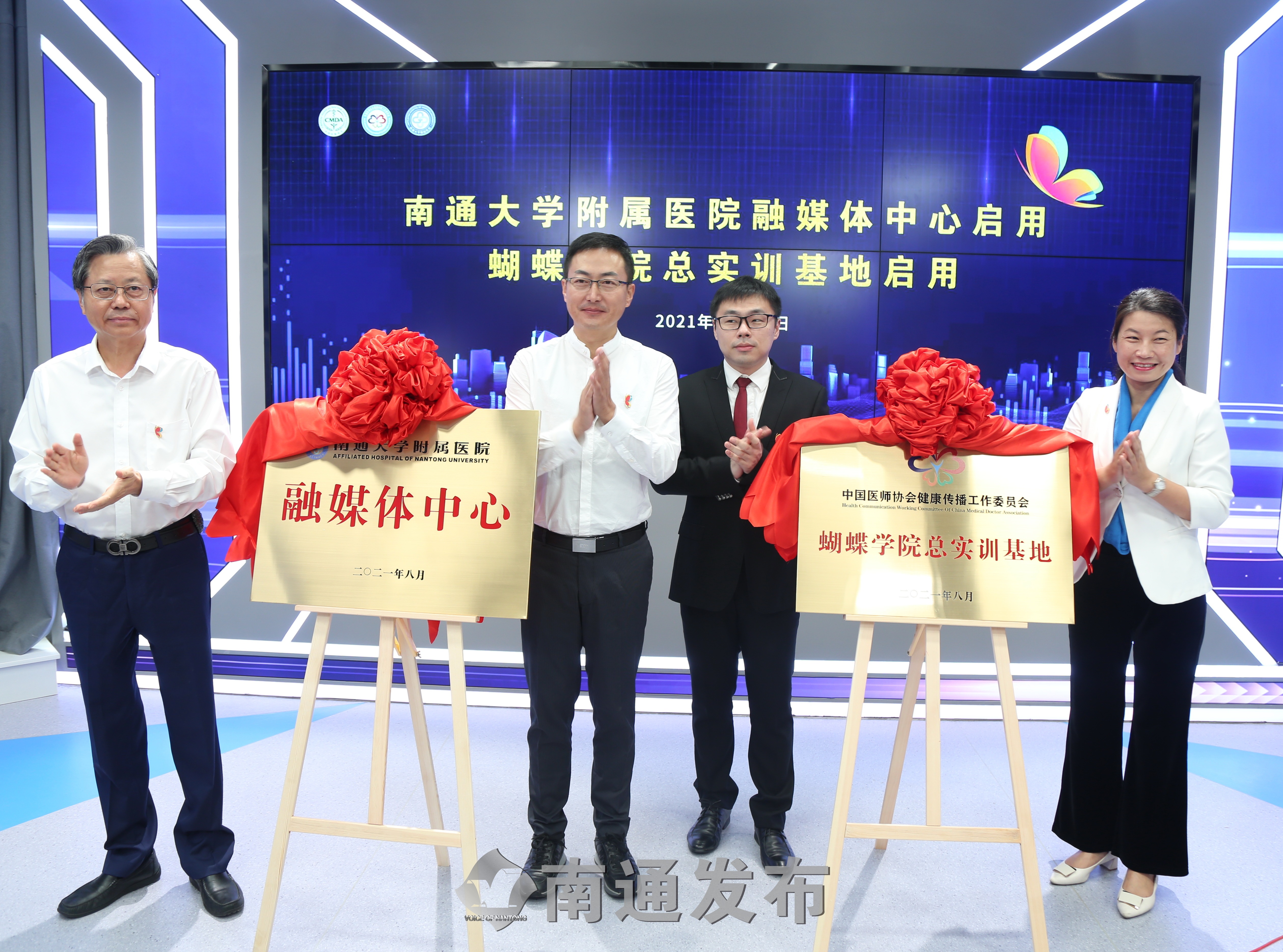 10月10日,中国医师协会健康传播工作委员会蝴蝶学院总实训基地落户通大附院,同时南通大学附属医院融媒体中心也正式启用。海南博鳌乐城国际医疗旅游先行区管理局、江苏卫健委、中国医师协会健康传播工作委员会、南通大学附属医院相关领导约30多人参加了活动。