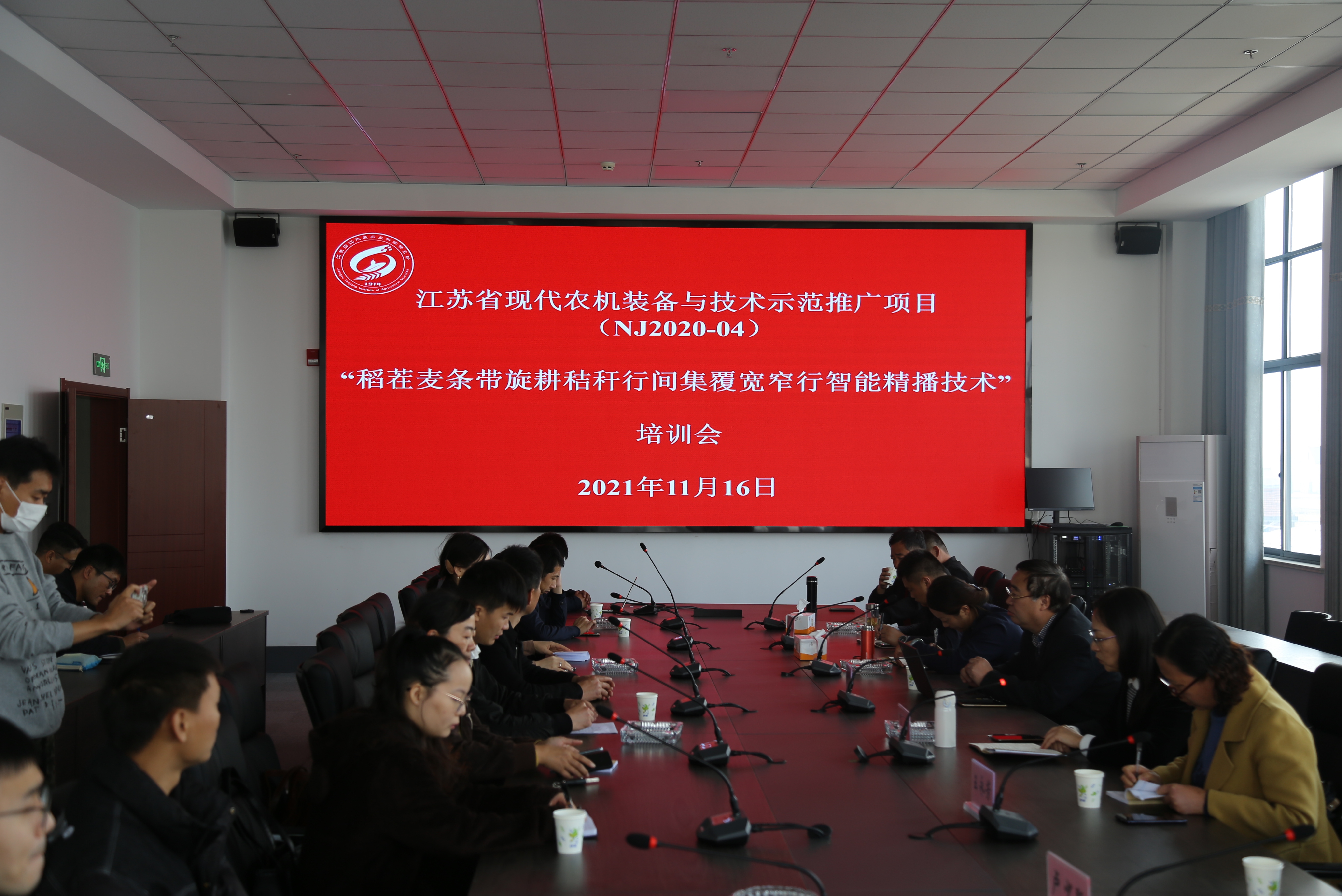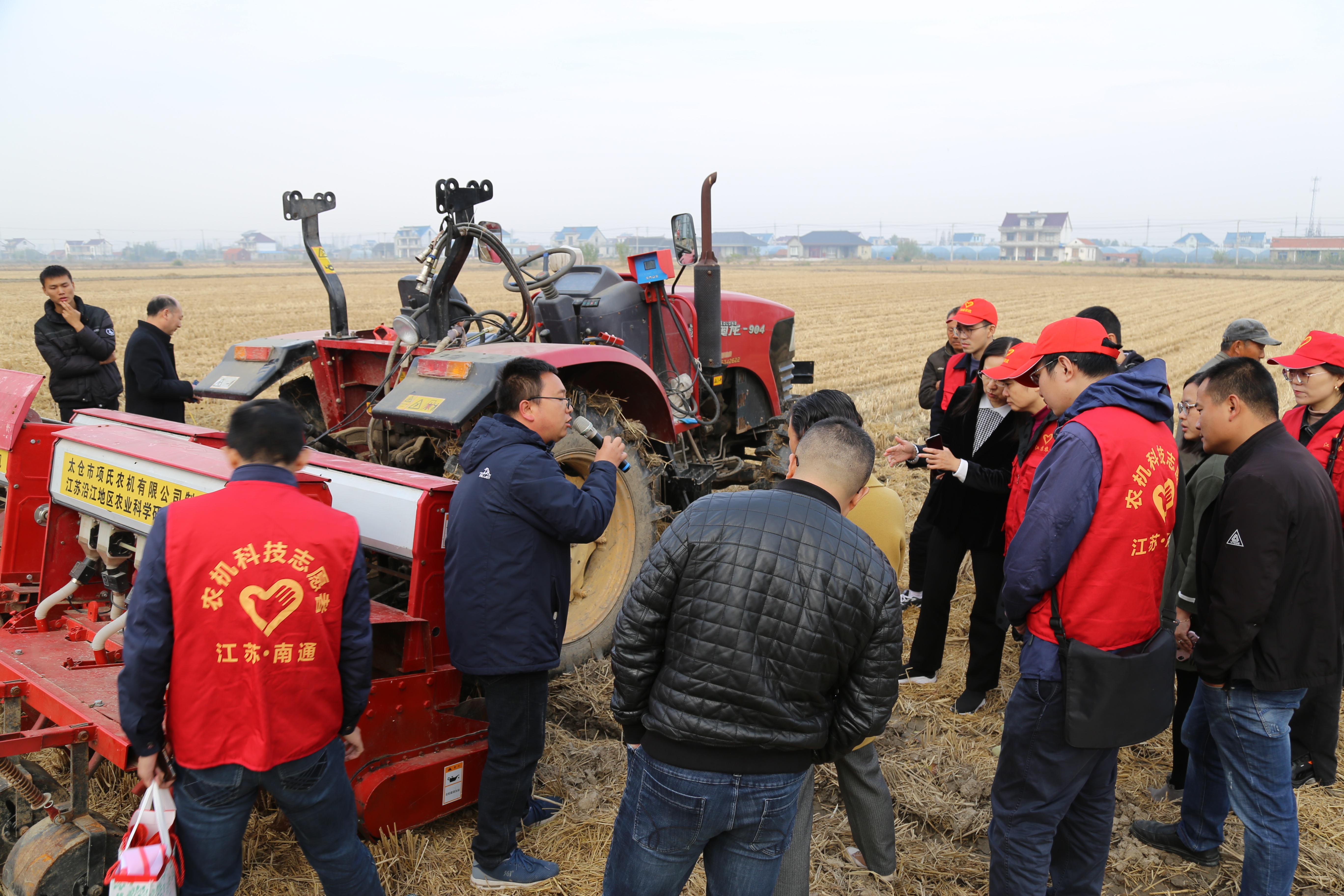 11月16日,江苏省现代农机装备与技术示范推广项目“稻茬麦条带旋耕秸秆行间集覆宽窄行智能精播技术示范(NJ2020-04)”观摩培训会,在如东县现代农业产业示范园区召开。