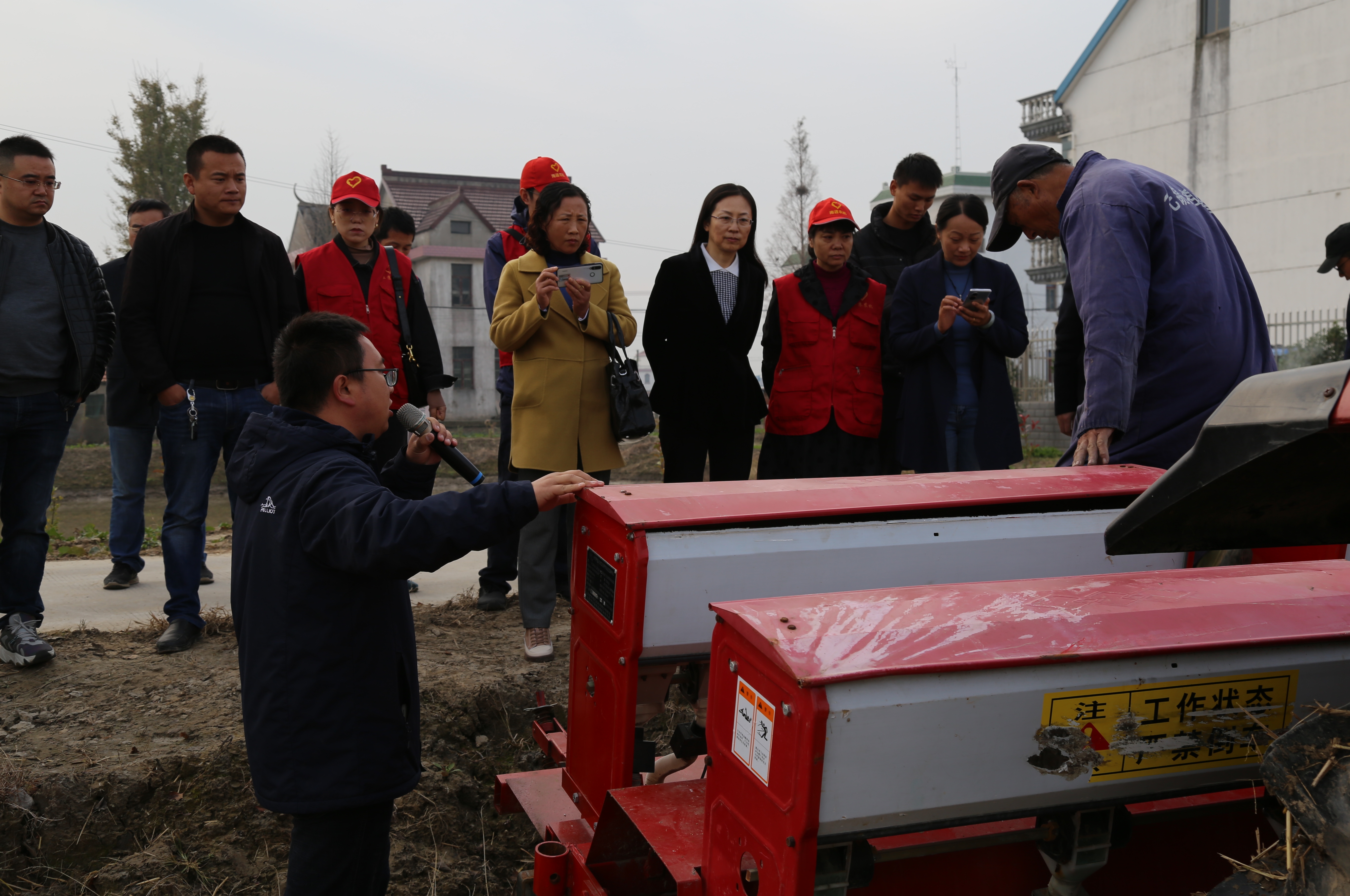 在项目实施核心示范基地的如东伟浩家庭农场,与会代表观摩了由沿江农科所自主研发的“全秸秆茬地洁区旋耕智能施肥播种机”作业现场。沿江农科所耕作栽培团队薛亚光博士现场介绍了该机具的研发过程、主要构造和性能特点。通过该机械装备一次性作业,能够实现条带旋耕、秸秆行间集覆和宽窄行精播的技术要求,并同步实现秸秆还田、施肥、旋耕、播种、镇压和沟系配套,在省种节肥、节能降耗、挖掘增产潜力等方面具有显著优势。现场,作业机手进行实地操作,检验该作业机具的作业效果。
