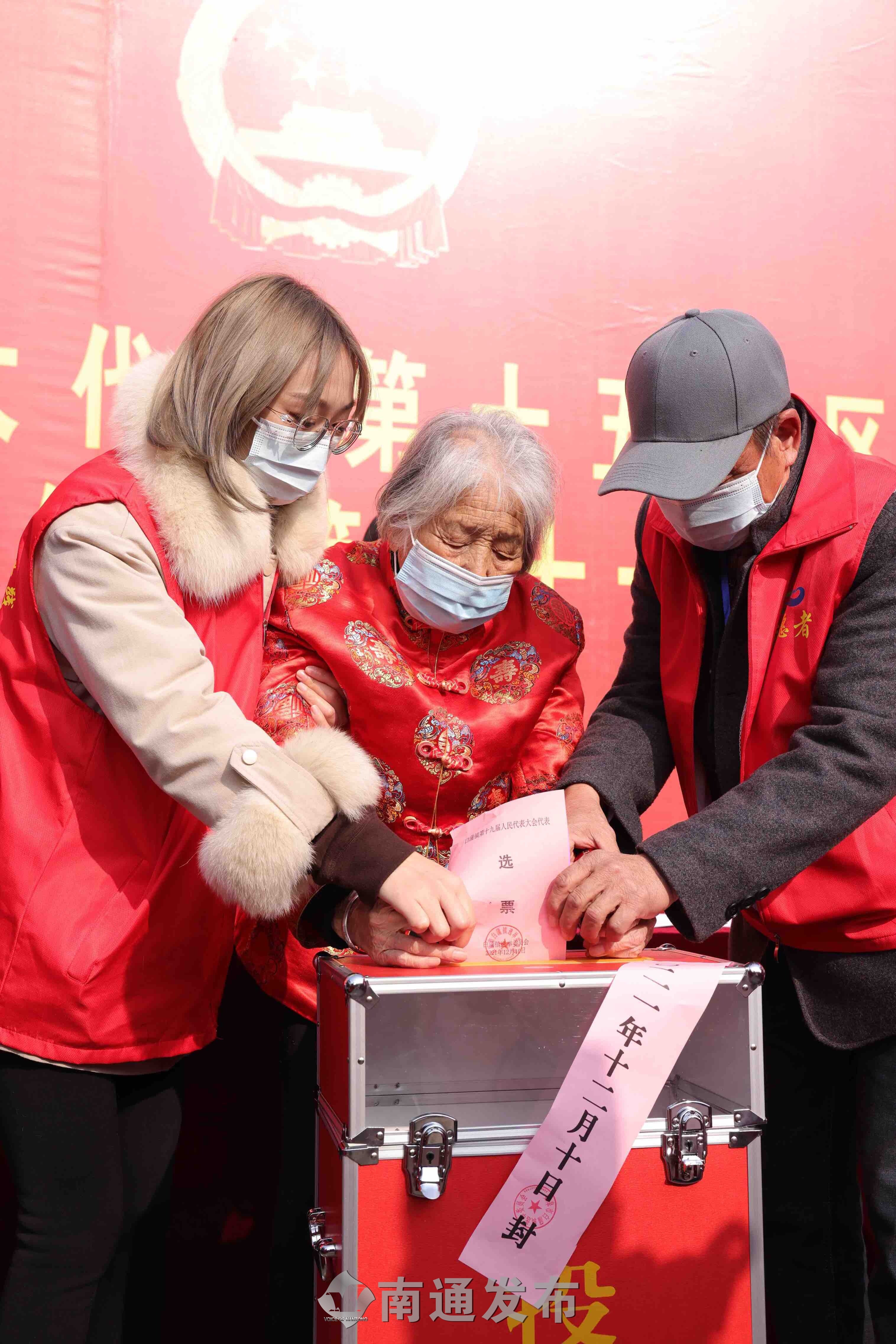 12月10日是南通市县镇两级人大代表换届选举投票日。上午10点,在如皋市白蒲镇跃进社区,百岁老人姜洁珍在家人的陪同下来到现场,亲手填写了手中的选票,并将其投入票箱内。这是她第19次参加投票。