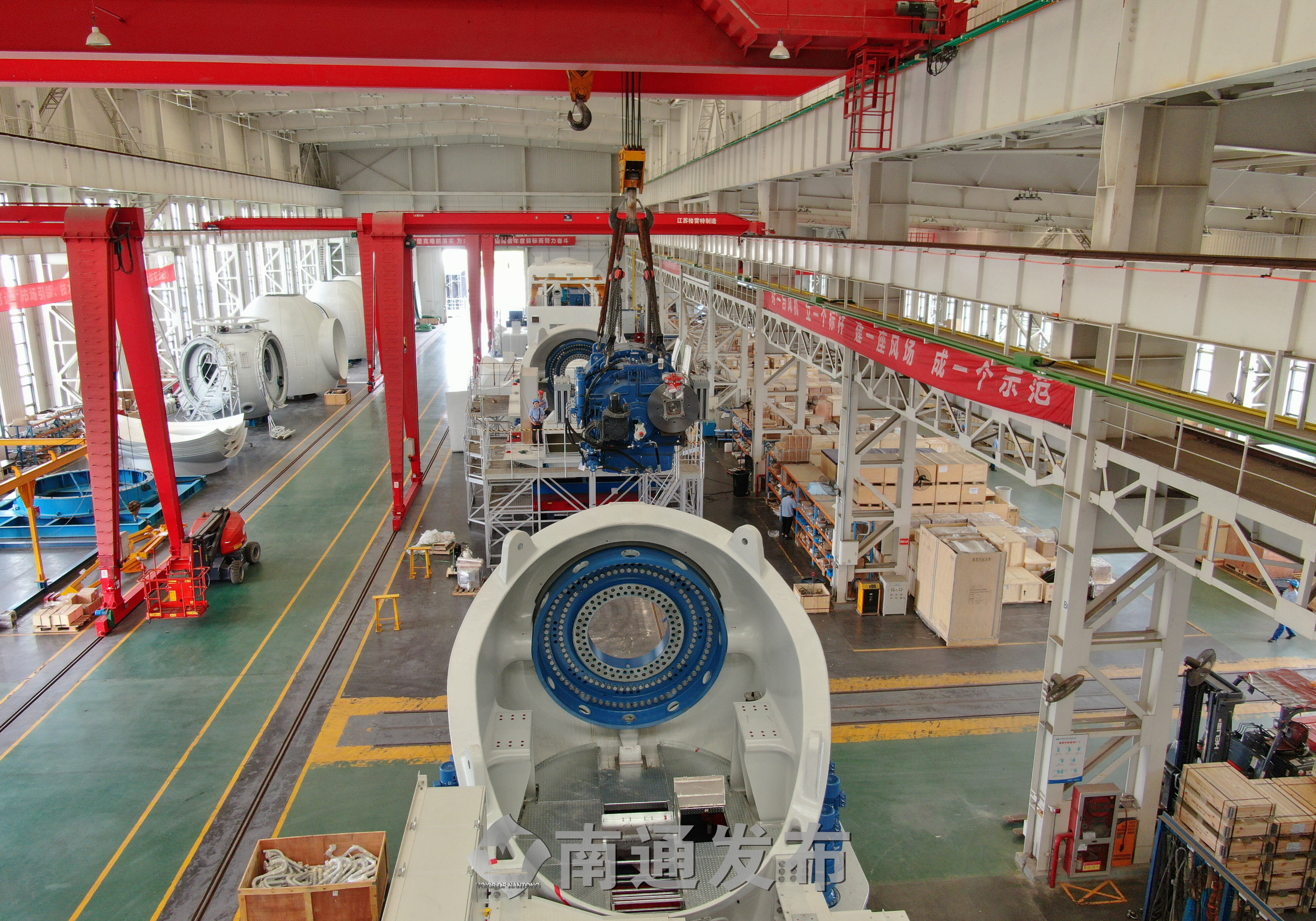 海堤外崛起亚洲最大海上风电场,海堤内园区生产风电装备一派繁忙,一台台产自如东本土的江苏海装5兆瓦风机、上海电气4兆瓦风机,一只只重通成飞的大型风叶和来自海力风电的高科技塔筒,从小洋口风电母港运往加快建设的海上风电场,全国首家国家火炬海上风电特色产业基地的崛起,为决胜抢装潮赢得先机。