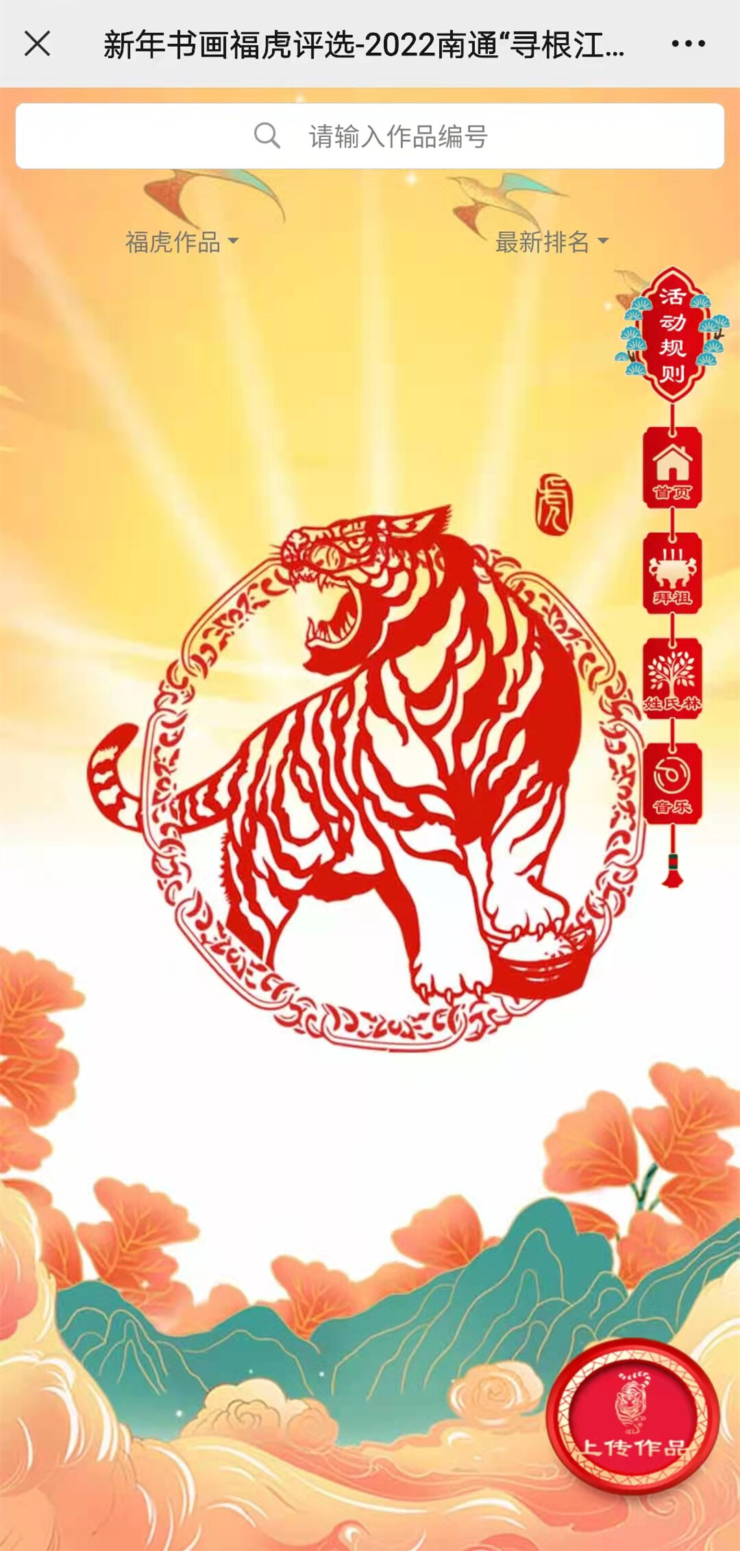 平台通过“书画福虎榜”,为更多有才华的江海儿女提供展示自我的机会,用户可上传自己的原创福虎作品参与活动评选,也可参与网络投票,为优秀作品助力。在2月15日,平台将对排行前20的书法和绘画作品进行公示。