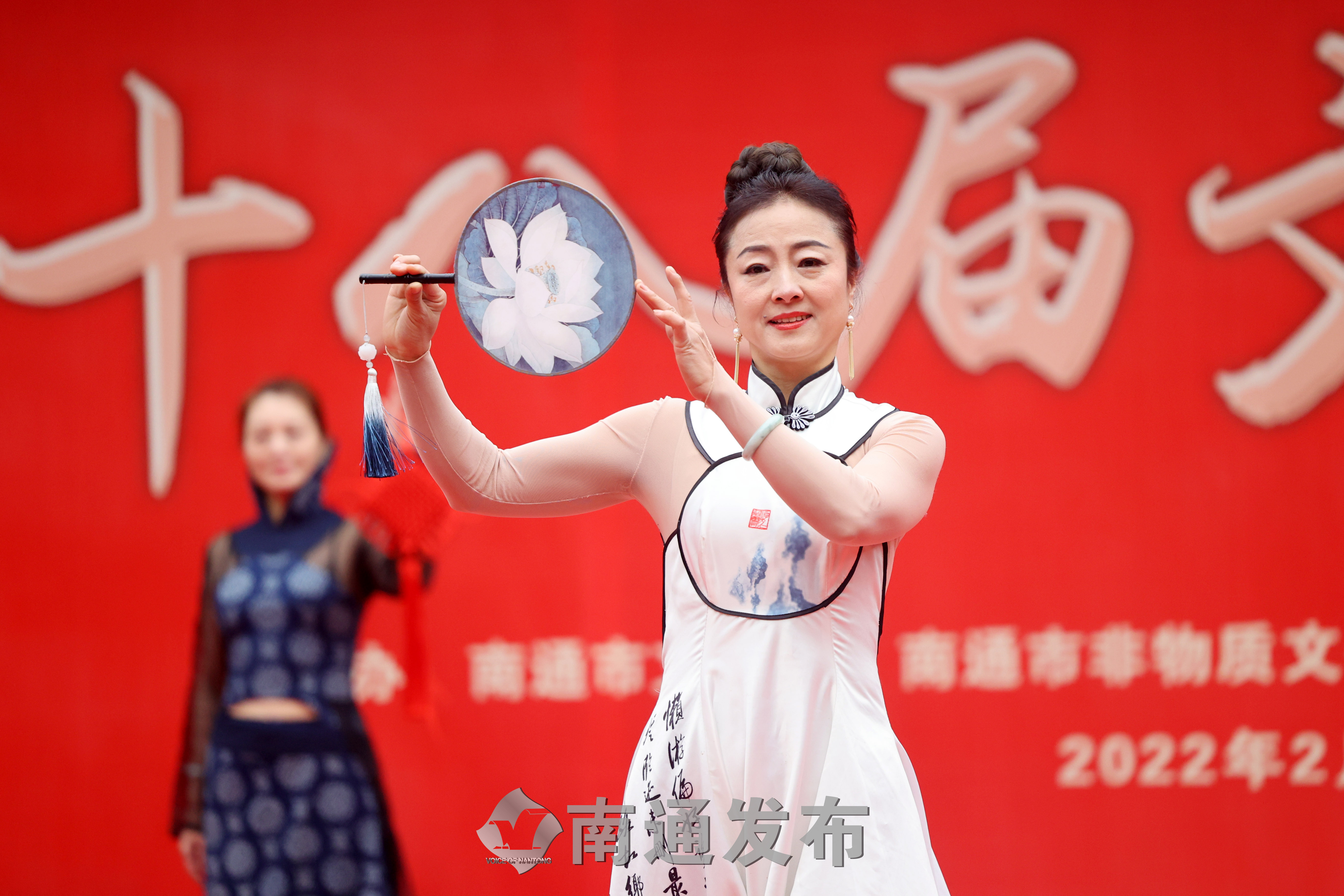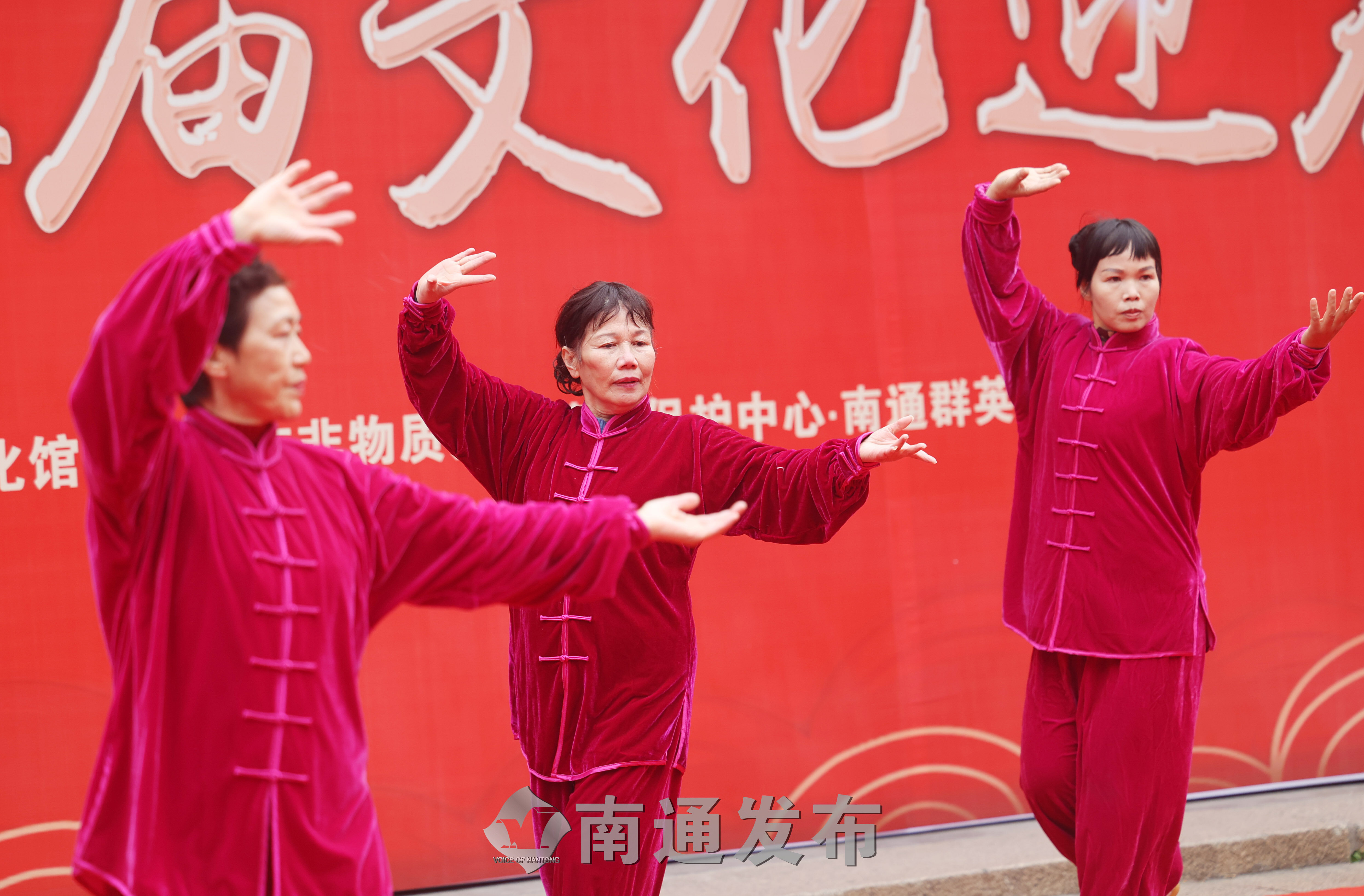 在演出现场,由南通市文化馆江海之韵舞蹈团的舞蹈《中华大家园》拉开了文艺演出的序幕,展望了美好未来,展现出走在康庄大道上中国人的豪情。随后,歌手季金鑫的独唱《我爱你中国》、南通市芳华岁月舞蹈队的舞蹈《游牧时光》、南通市嘉年华舞蹈艺术团的舞蹈《敦煌乐天舞》、南通俪人行模特团队的服装表演《家乡美》等精彩的演出引来全场观众的阵阵掌声。