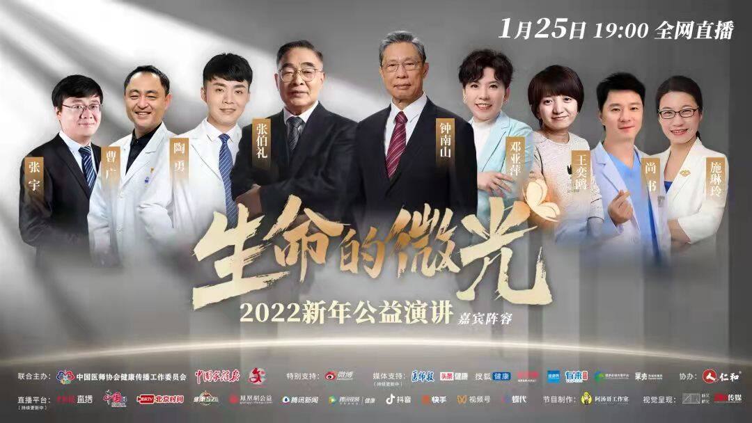 在这种情况下,施琳玲和全国近百位有正义感和责任感的医务工作者共同倡导,并在国家卫生健康委宣传司的指导下,于2016年10月在通大附院发起成立了“中国医疗自媒体联盟”。3年后,转型升级为中国医师协会健康传播工作委员会。截至2021年10月,已拥有成员2883个,省级团体成员10个,各平台的“总粉丝”数量近3亿。由于该委员会的不懈努力,近几年医患关系的舆论场得到很大的改善,正气抬头,那些别有用心的假新闻和恶意炒作已经很难找到市场了。在这种情况下,施琳玲和她的同事们并没有感到满足,他们将健康传播的工作向深的层次上进行探索和发展,以人文的力量来进一步温润医患关系,新年公益演讲《生命的微光》就是在这样的形势下应运而生。