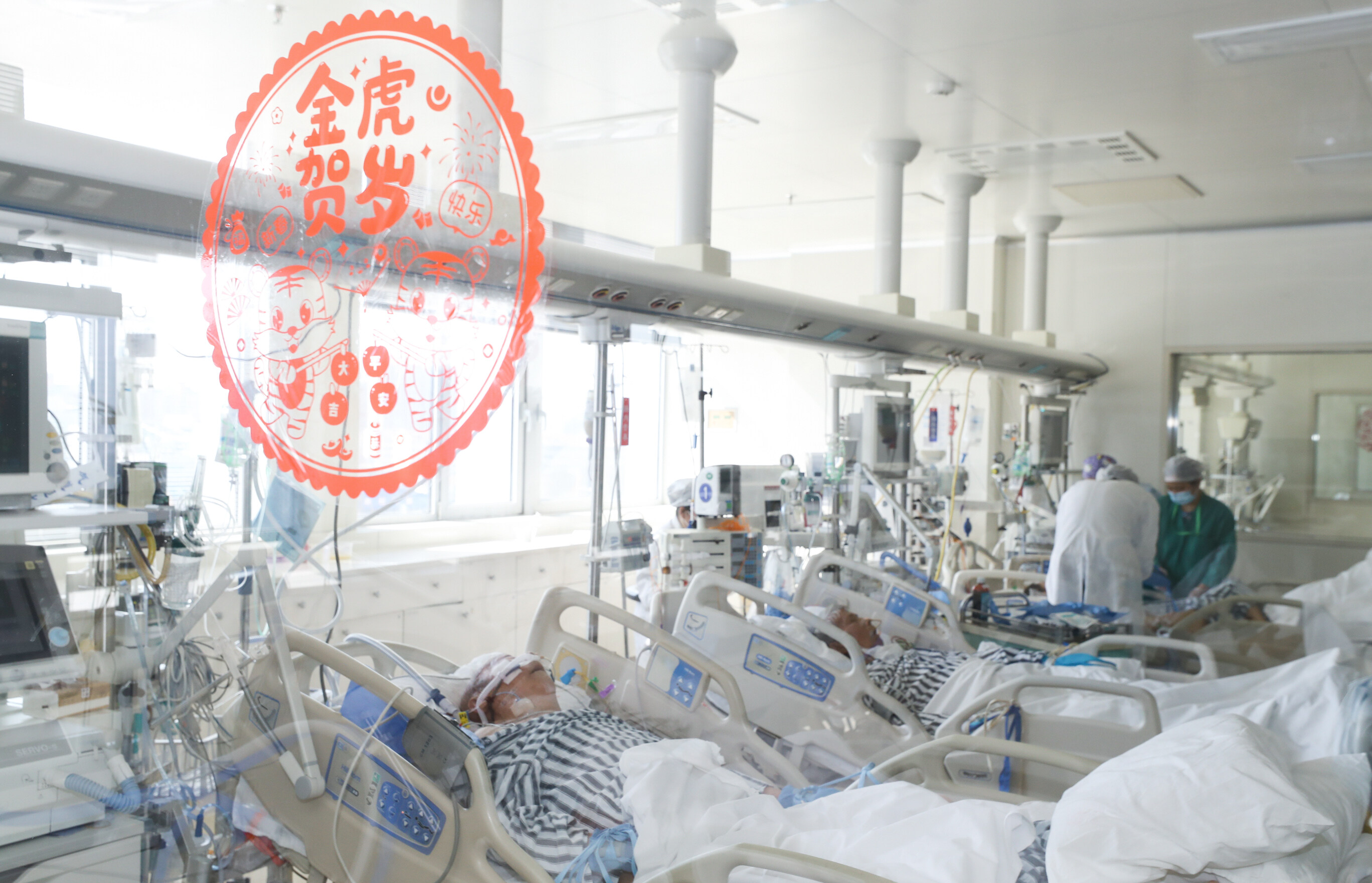 在重症医学科门前,总是能看到许多聚集在一起的病患家属,焦急担忧的眼神迫切地想知道亲人更多的情况。这扇门无疑是沉重的,是离死亡最近的地方,也是生命的最后一道防线。这里的医护每天与死神较量、与时间赛跑。