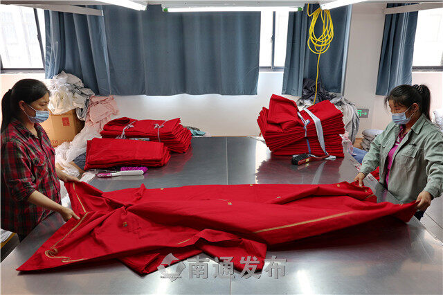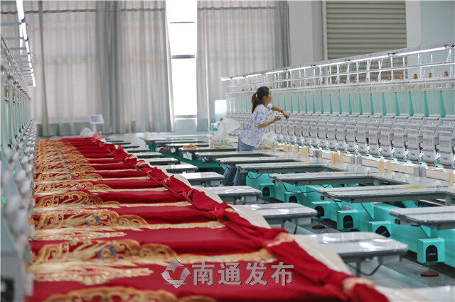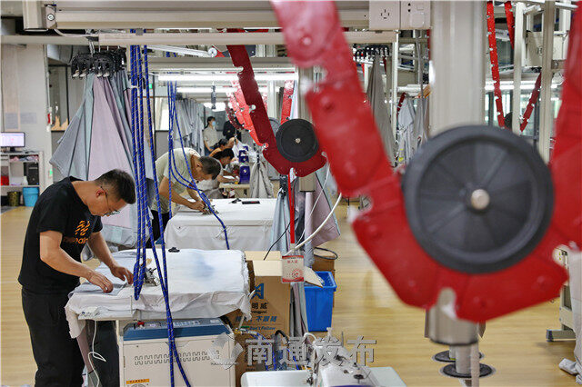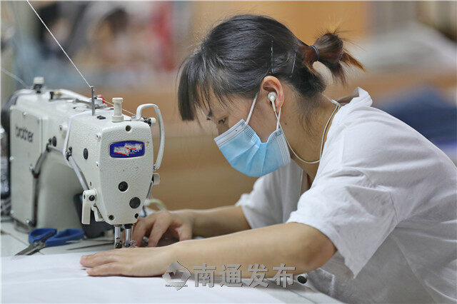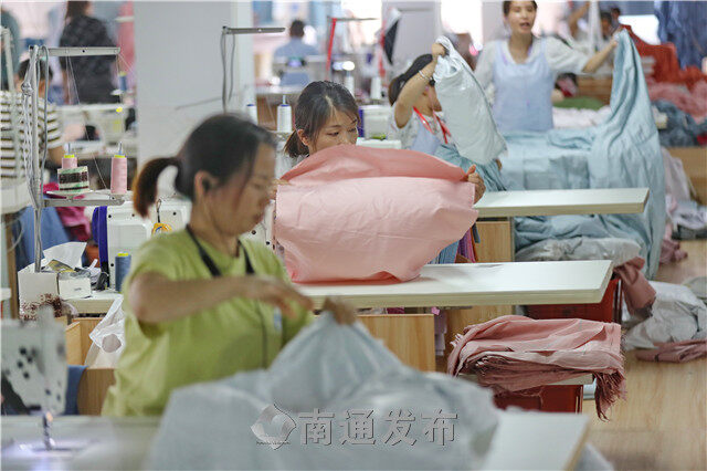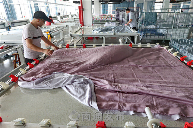 2022年5月17日,在海门区三星镇,复工复产的家纺企业忙碌加工销往全国各地的家纺产品。据悉,三星镇130多家规上企业均已复工复产。