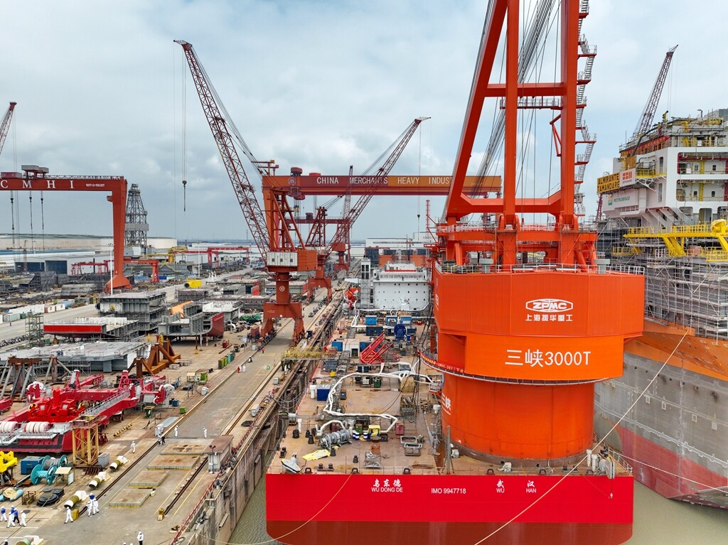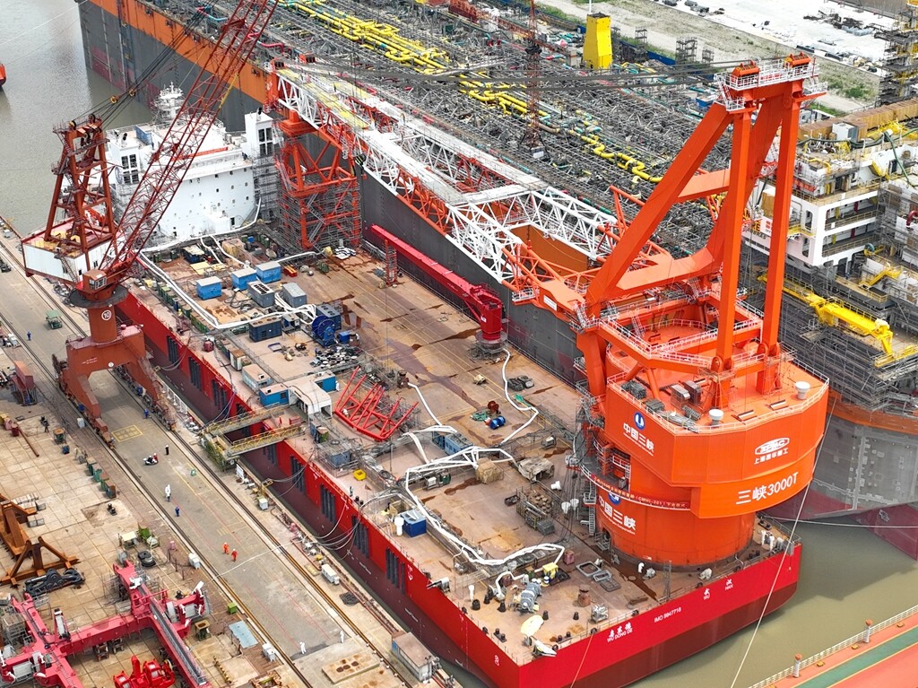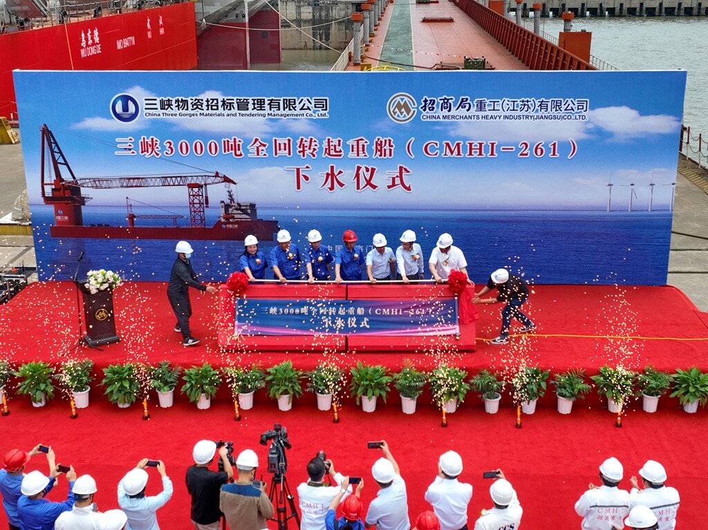 2022年5月25日,三峡集团3000吨全回转起重船在招商工业海门基地顺利下水。该船是我国第一艘集深远海风电基础运输和起重施工为一体的专业化风电施工船机,并且满足海洋工程施工作业的高行业标准,是一艘多功能、高技术含量的海工起重船。