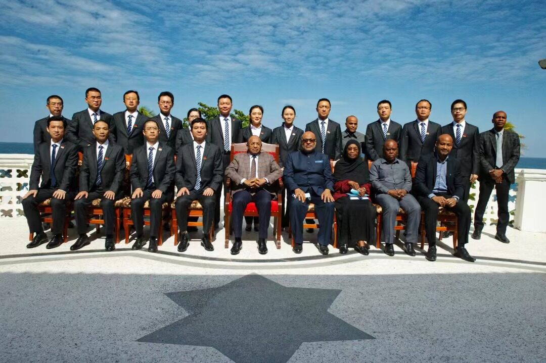 坦桑尼亚桑给巴尔总统姆维尼与中国医疗队队员合影留念