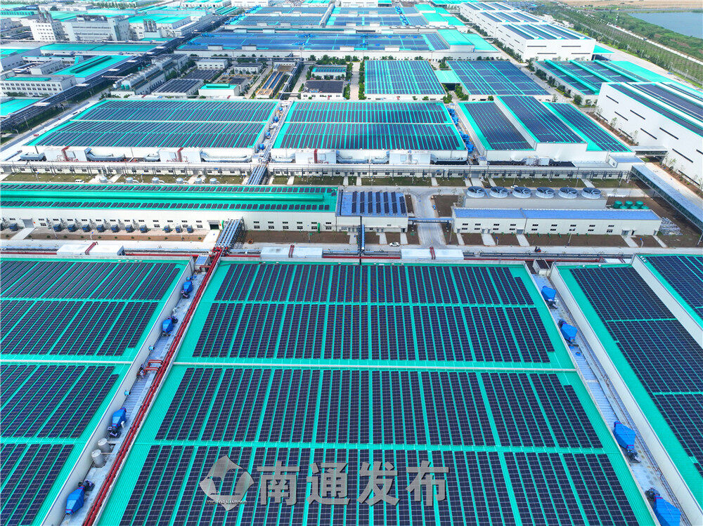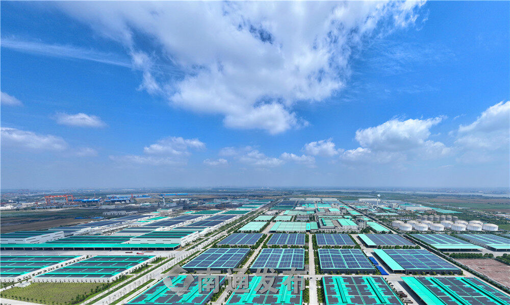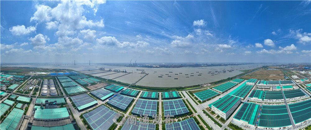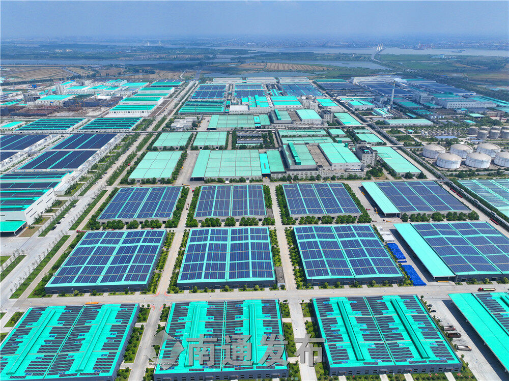 2022年6月7日通州区五接镇拍摄的恒力(南通)产业园屋顶分布式光伏发电项目一角。