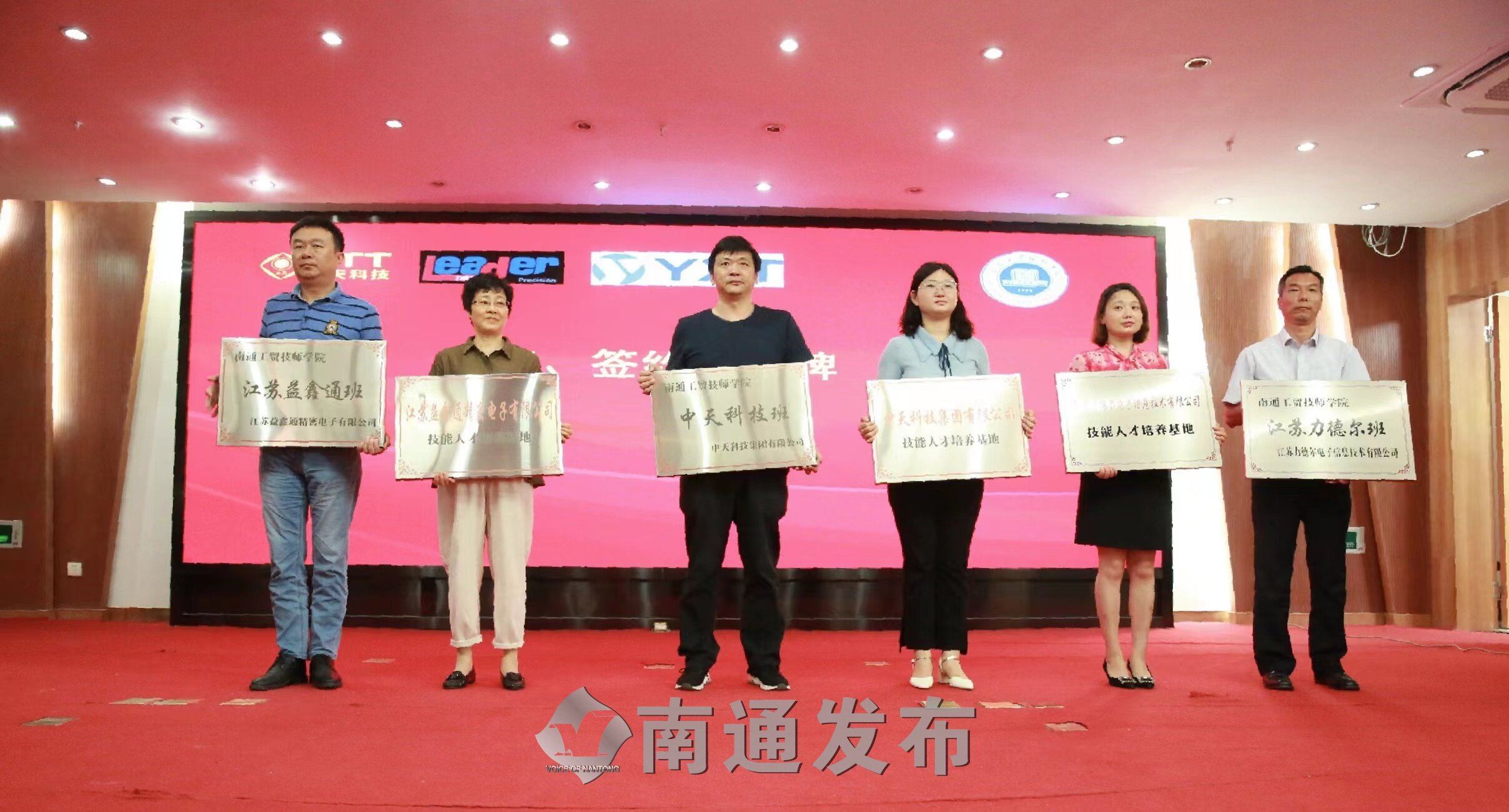 近日,南通工贸技师学院2022级企业定制技师班集中签约授牌。