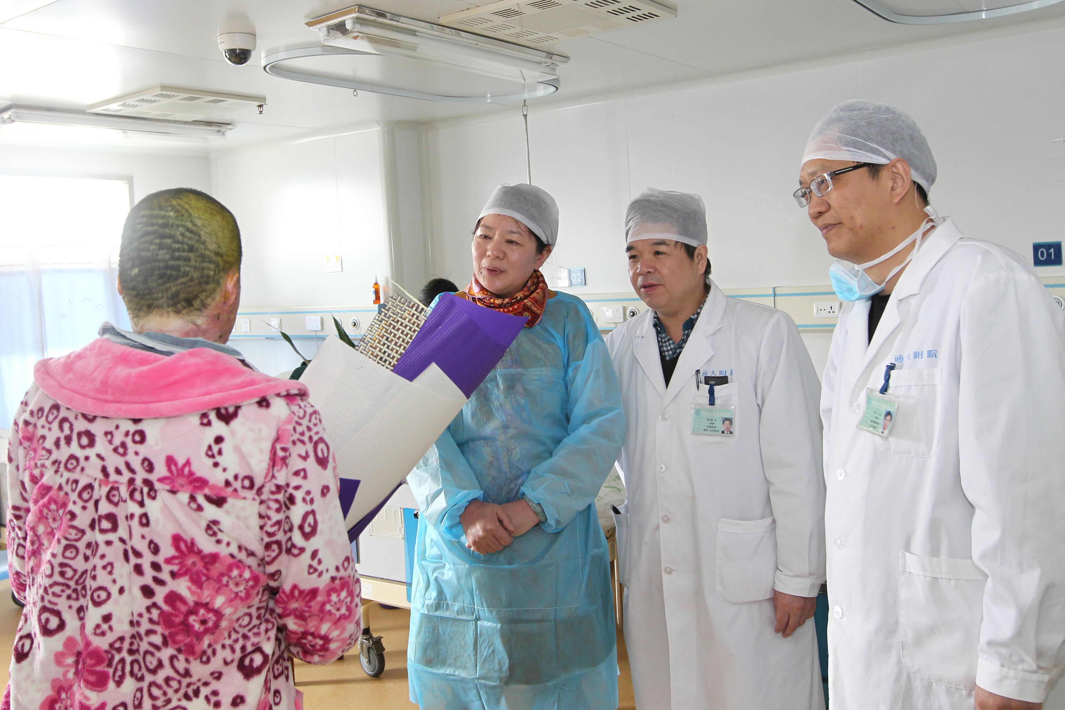 张逸见状赶忙伸手将其扶起,李娟母亲拿着早就准备好的鲜花和锦旗,塞到张逸的手里,嘴里一个劲儿地说着感谢,感谢全体医护人员救了自己女儿一命。