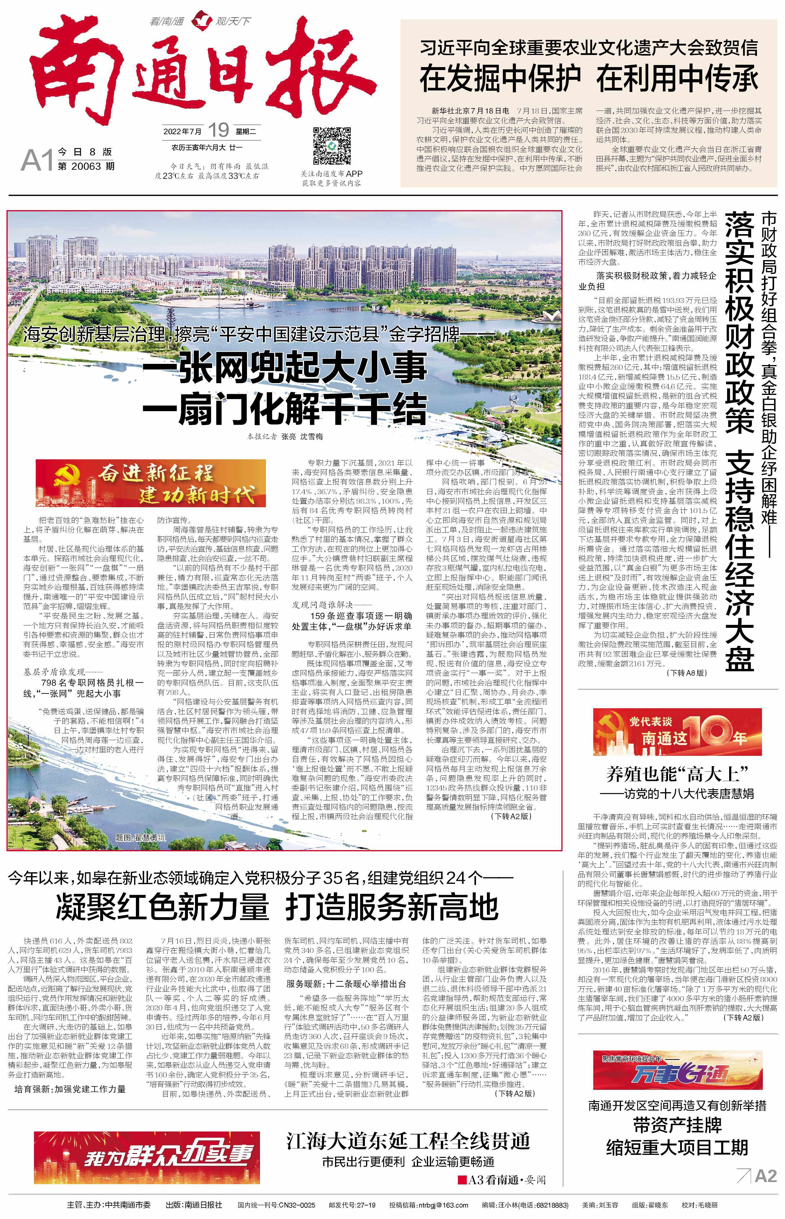 村居、社区是现代治理体系的基本单元。探路市域社会治理现代化,海安创新“一张网”“一盘棋”“一扇门”,通过资源整合、要素集成,不断夯实城乡治理根基,百姓获得感持续提升,南通唯一的“平安中国建设示范县”金字招牌,熠熠生辉。