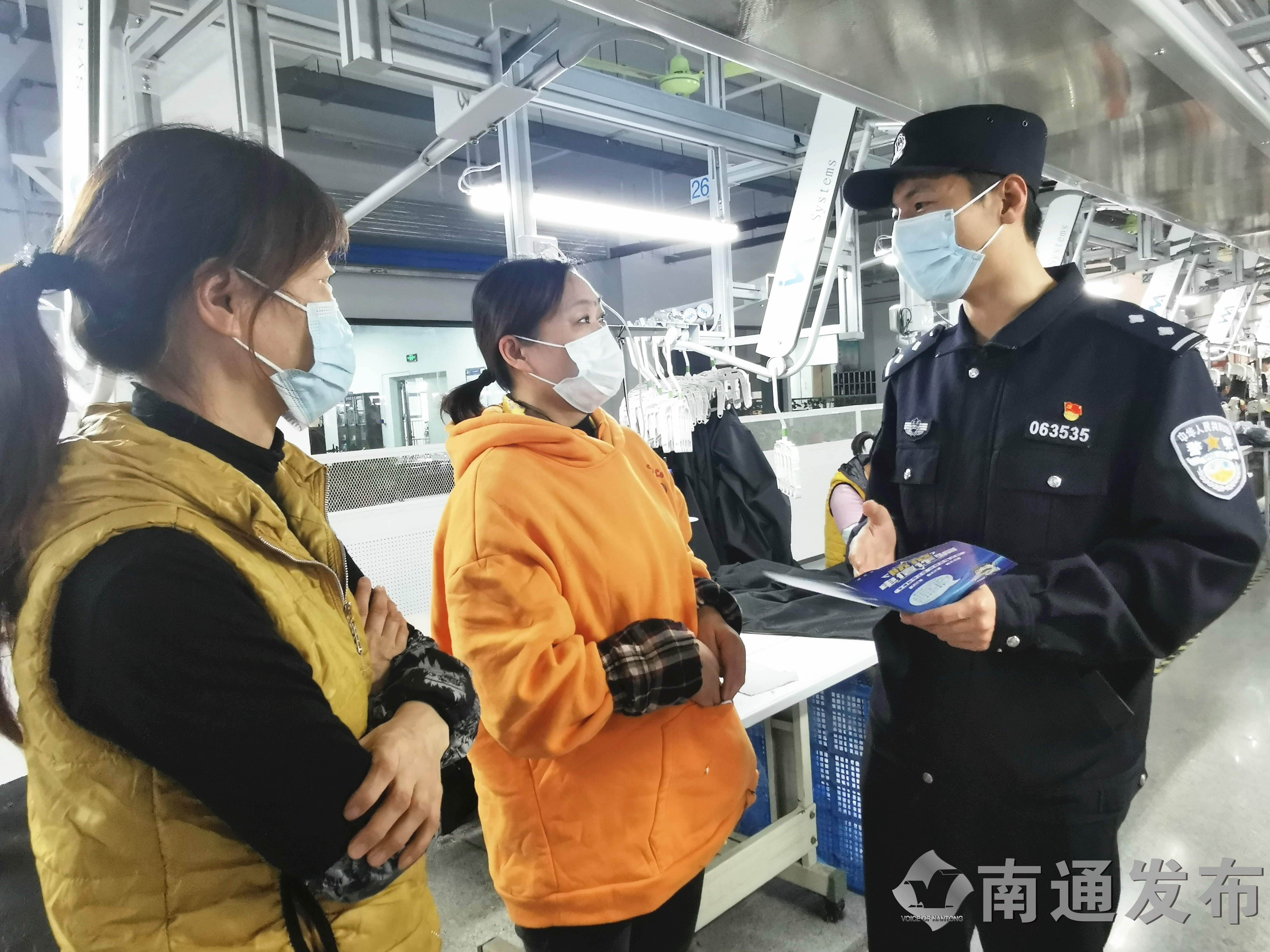 11月20日下午,南通市公安局开发区分局竹行派出所社区民警尹斌联合网格员深入辖区企业开展向社会报告工作活动,与员工们面对面交流,了解需求,征集建议,解决困难。同时,向工人们宣传防范新型电信网络诈骗,提高安全防范意识,保护自己的人身财产安全。