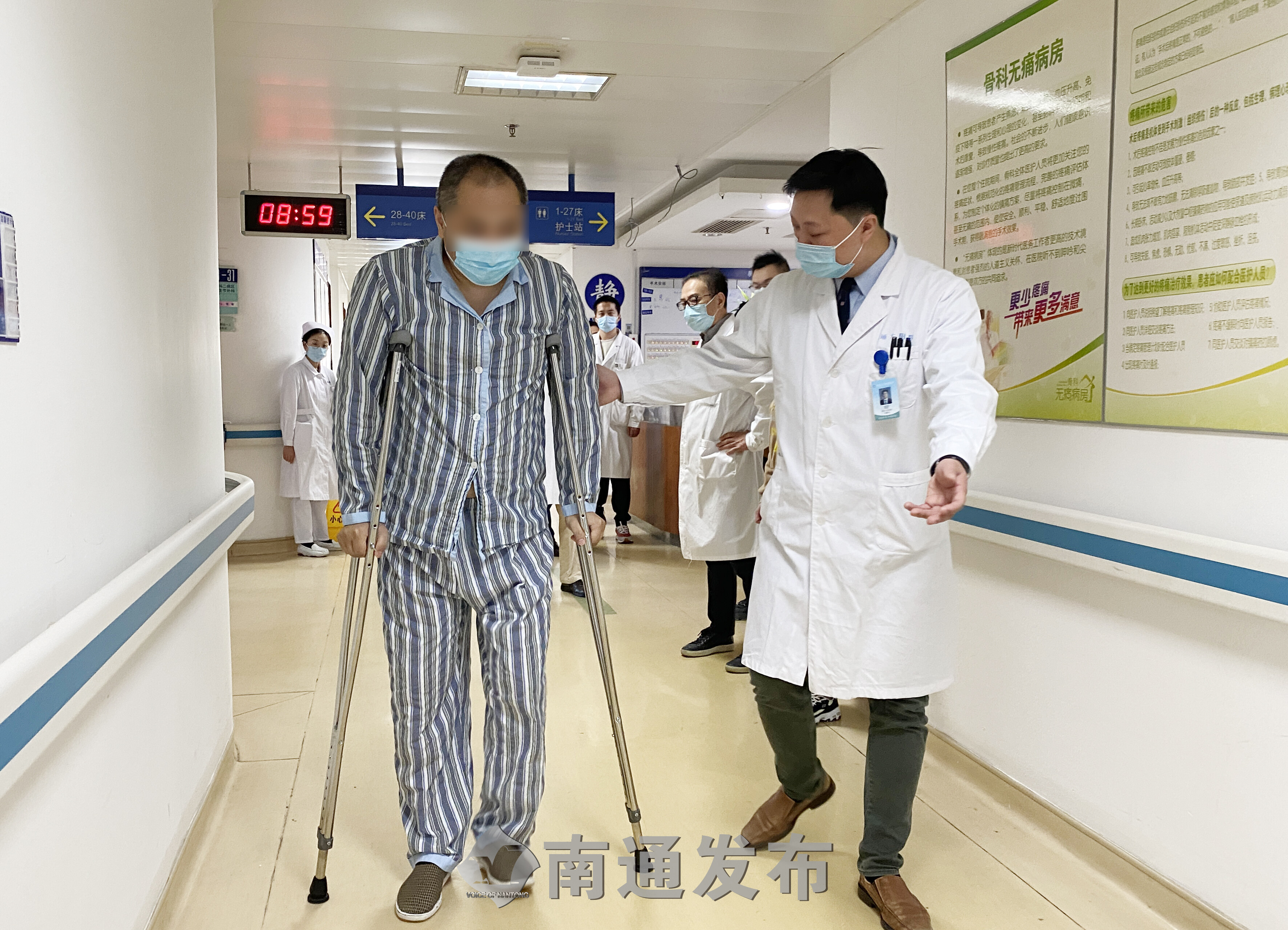 12月2日上午,在南通大学附属医院关节外科病区,44岁的张先生(化名)在副主任医师刘雅克的鼓励下,站立起来并沿着病区走廊走了一个来回。“两年了,这还是我第一次自己走了这么远的路,本以为这辈子不可能再像正常人一样走路了,没想到通过这次手术我还能实现这个愿望。”张先生兴奋地向记者说道。