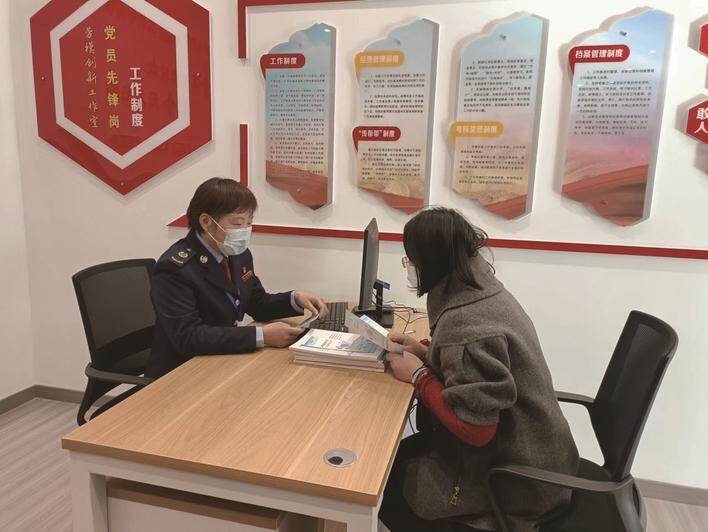 袁卫芳在劳模创新工作室接待纳税人咨询