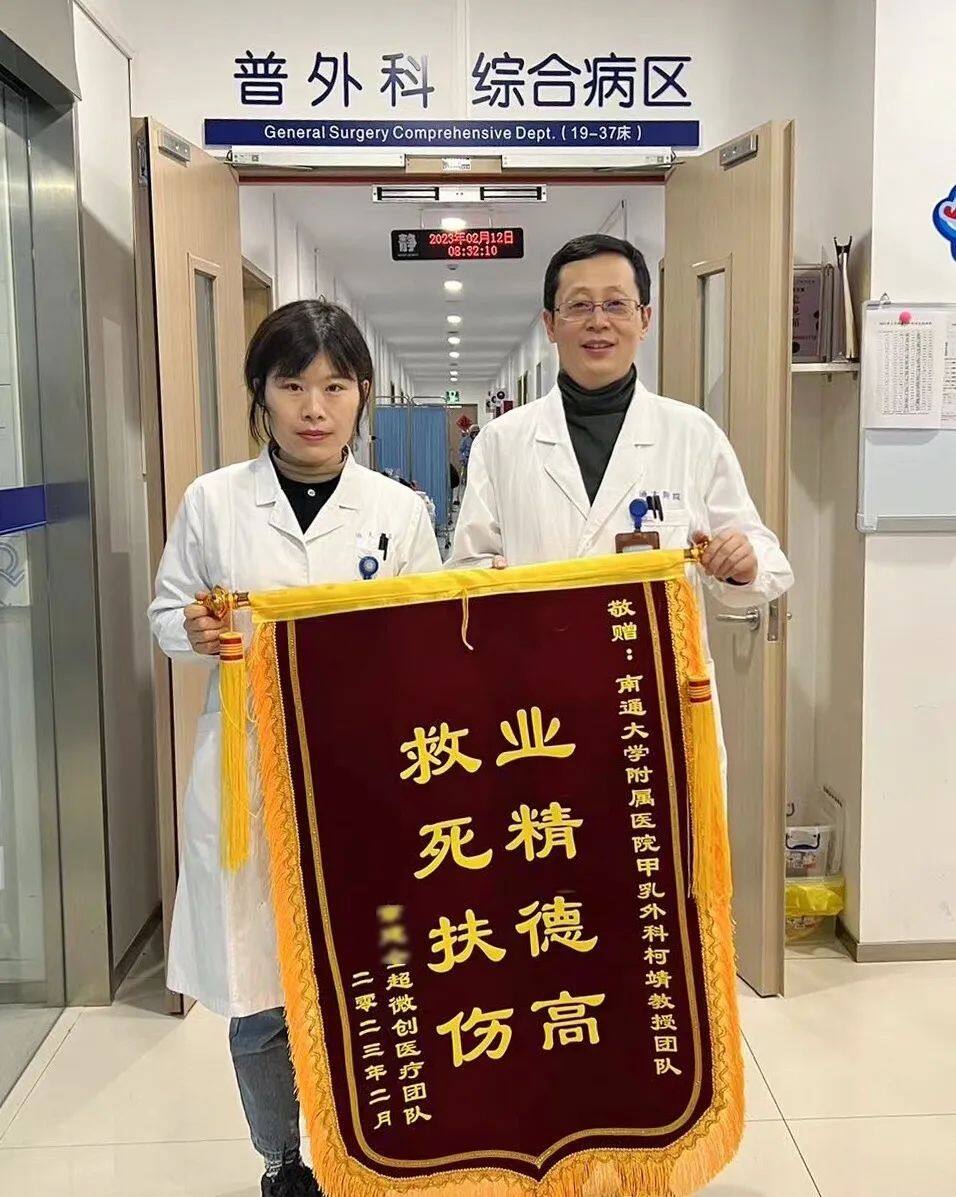 “业精德高,救死扶伤!”近日,通大附院甲乳外科主任医师柯靖团队收到了一面上海同行送来的锦旗,面对专业医学人士的这份赞许和感激,柯靖倍感意外,同时也很是激动。“这是对我们团队的鼓励和肯定,我们会继续坚守初心,为患者提供优质的医疗服务。”