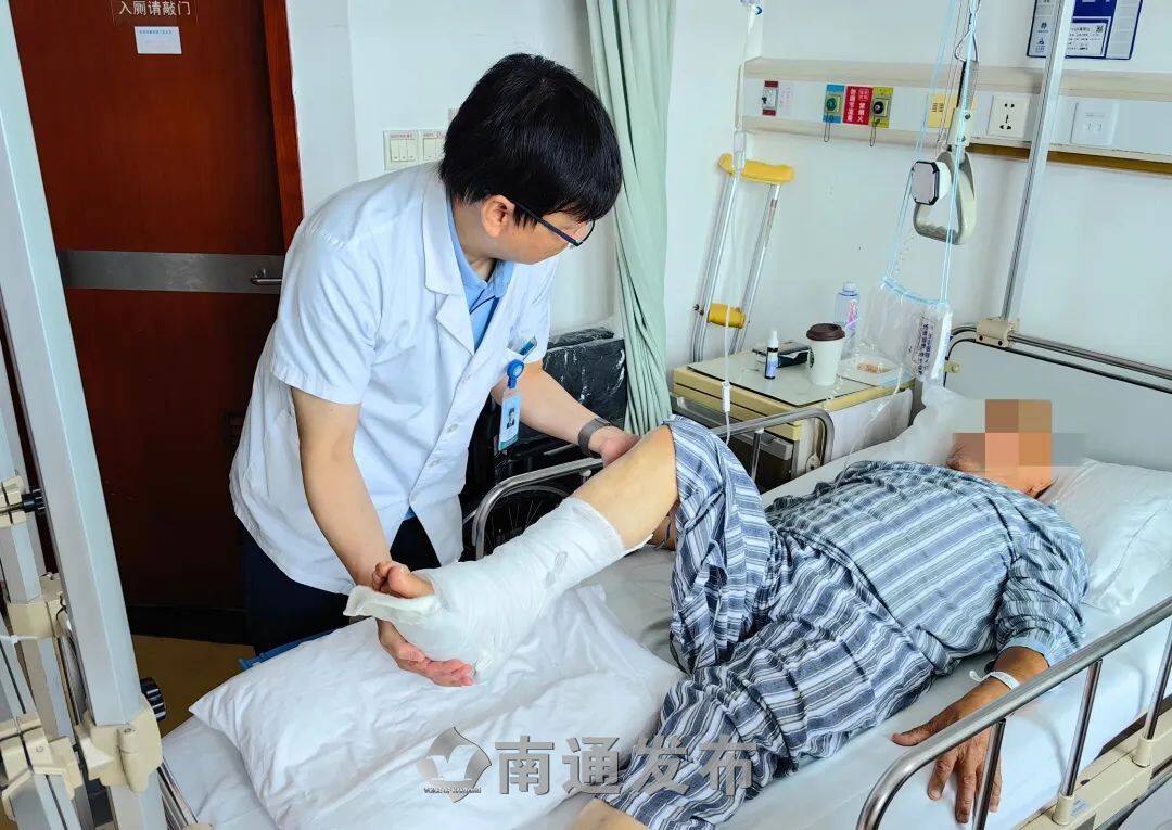 “我就知道相信通大附院的骨科是没有错的!”12日,在通大附院骨科三病区(足踝外科和创伤骨科病区),71岁的李老汉看着打着石膏、不再疼痛的右脚,十分开心。原来,该院足踝外科为其实施了南通地区首例踝关节置换术,让老人不再受踝关节疼痛的煎熬。