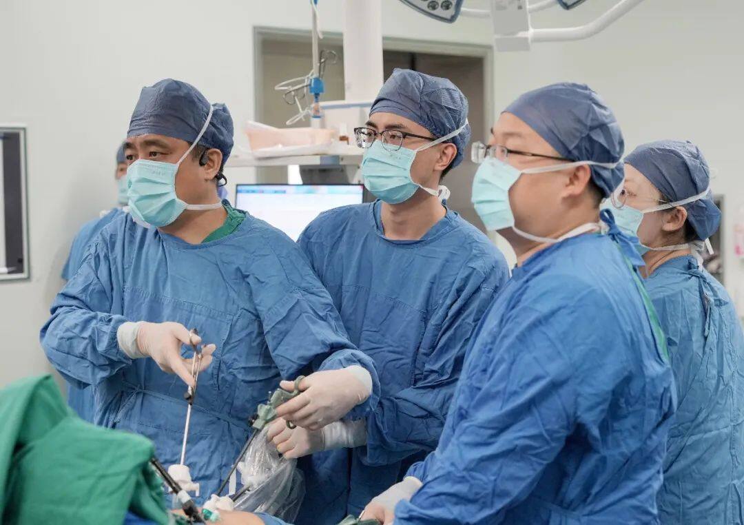 穿过术前准备室,记者首先来到了小儿外科手术室。小儿外科主任医师咸华和葛文亮正在为一名男童进行包皮切除,手术采用全麻下一次性包皮环切吻合术,十多分钟即可完成。葛文亮告诉记者:“暑期来临,小儿外科也迎来了就诊高峰期,主要包括疝气、包皮、尿道下裂,还有慢性阑尾炎等手术,手术量每天达到20台左右。面对手术量猛增的情况,我们采取日间手术诊疗模式,做完观察一晚上就可以出院了。”同样迎来暑期手术高峰的还有胸外科,正在准备上台一例肺癌根治手术的胸外科主任医师陈建乐在术前间隙告诉记者:“每逢暑期都是胸外科接诊各类胸廓畸形、手汗症的高峰期。对于学龄的患儿来说,暑期是治疗的黄金时刻,这类手术早发现早治疗,术后恢复快且效果好。目前科室应对这类择期手术就诊的高峰,同样采取日间手术诊疗模式,48小时内完成入院及出院。”来到隔壁的关节外科手术室内,只听见监护仪偶尔传来的工作声。关节外科副主任医师刘雅克正在为一名51岁的男性患者进行肩袖修补术,这是他今天的第六台手术。据了解,这名患者由于长期从事搬运等重体力劳动产生了肩部慢性劳损,通过微创手术能够给肩袖跟骨头创造一个彼此愈合的机会,从而使肩袖达到修补的结果,整台手术需要进行2小时左右。刘雅克介绍,顺利的话这名患者在三个月康复期后就能恢复到正常的肢体自由活动。晚上7点45分,达芬奇机器人手术间内正在进行着一台肠道肿瘤根治术。胃肠外科主任医师薛万江借助机器人灵活的机械手臂,在狭窄的手术空间内进行着高难度操作。手术间隙,薛万江介绍道:“与传统腹腔镜手术相比,机器人手术具有明显优势,是超精准的微创治疗,相比于人手可能产生的颤动,机器人可以转弯540度的器械在狭窄的空间里更为稳定、灵活、准确。同时,达芬奇机器人的摄像头能将病灶放大10倍,提供裸眼3D的高清视野,从而做到肠道肿瘤根治性及安全性。”为了加快手术周转,节省医护人员往来时间,手术室外专门设立了小食堂,供医务工作者用餐。刚刚结束一例复杂心脏手术的心外科主任医师尤庆生从小食堂走出来,上一台持续8个小时的高难度手术让他感到些许疲惫,但在短暂的休息后尤庆生即将投入新的战场,接下来还有两台手术正在等待着他。夜色正浓,一位医生正在两个手术室来回穿梭,走近一瞧是手术麻醉科主任医师高永涛正在同时为神经外科和胸外科的两台手术进行麻醉监护工作。短短一个小时,只见他不停地在手术室之间奔走,注射、插管、监测、停药、拔管,时刻盯着显示器,观察患者的心跳、血压是否正常。虽然手术间内配备了两名麻醉医生,但极具责任心的他容不得半点马虎,手术过程中,高永涛随时与主刀医生保持沟通,提醒患者的生命体征变化、预知可能的病情变化,进行事前处理。晚上8点45分对于大多数人来说正是茶余饭后的休闲时光,但在肝胆外科手术间内,肝胆外科主任医师王鹏还在为一名42岁女性患者进行着一例腹腔镜下胆总管切开取石术+二期胆道修补术。他告诉记者:“每天的工作都安排得满满当当,前两天为了能排到达芬奇机器人的手术间,凌晨两点多才上到手术台。昨天是一整天门诊加4台手术,接近凌晨下班。今天手上这台做完,还有一台等着我。虽然大家很忙、很累,但是患者的病情不等人,只要能尽快为病人解决疾病带来的痛苦一切都值得。”夜已深,复苏室里的护士们还在密切观察着患者的术后复苏情况。这群无影灯下的战士们与时间赛跑,与死神斗争,用实际行动坚守着每一个生命的期盼。