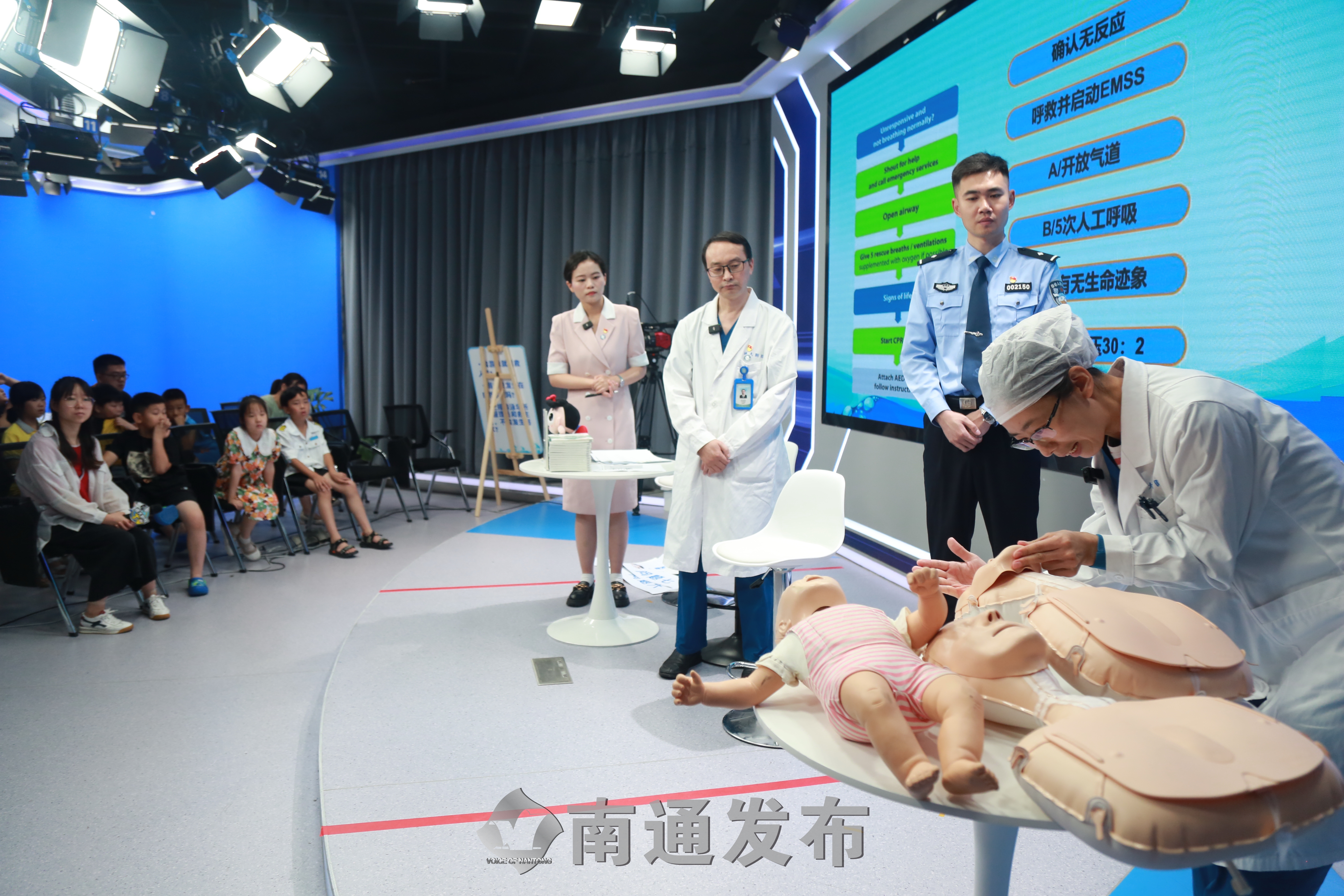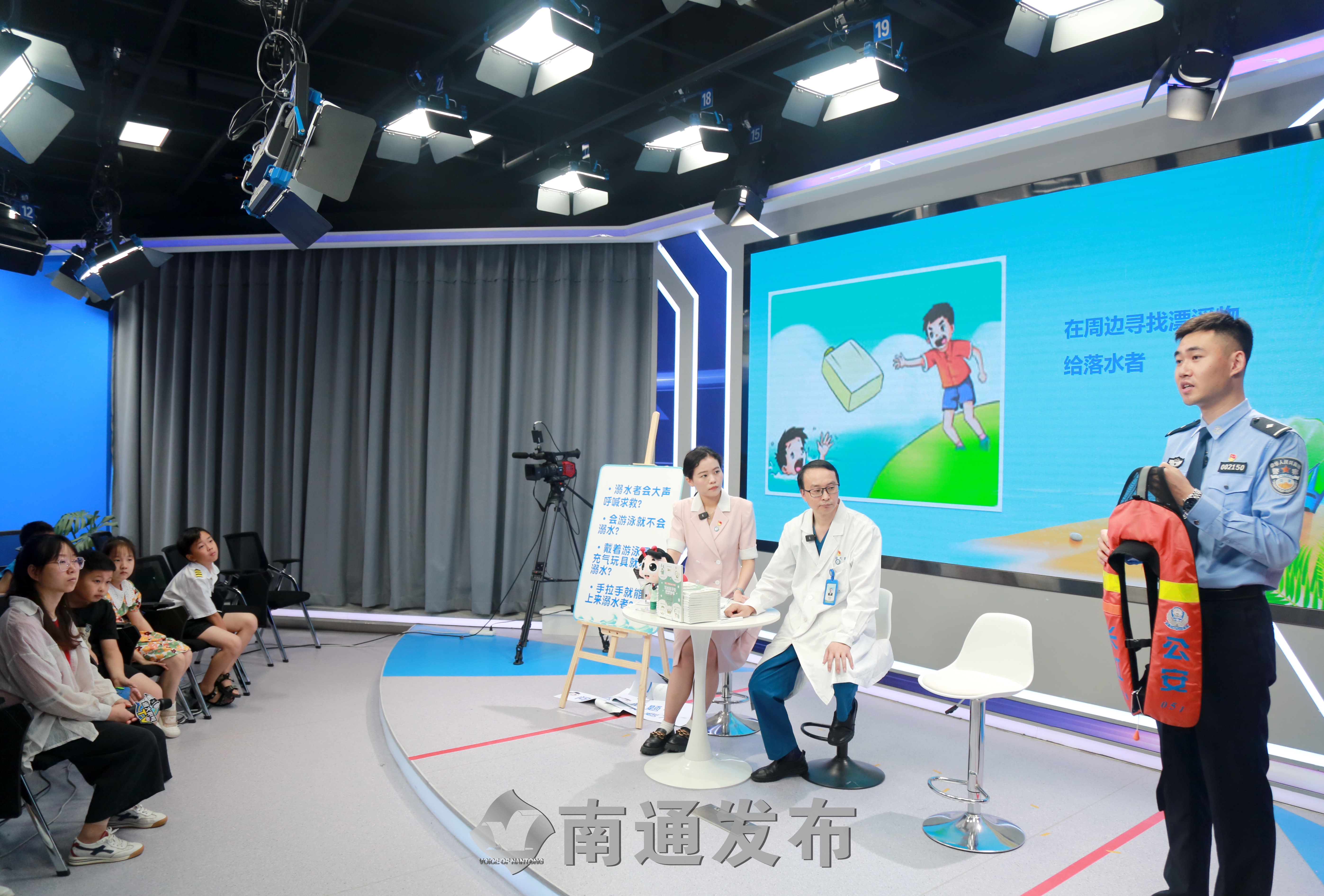 “下河游危险!危险!独自游危险!危险!NO,NO,NO,不能去呀!”7月28日,通大附院联合长航南通公安通过人民日报视频客户端、通大附院视频号等多平台,以网络直播的方式,在通大附院融媒体中心演播室,为广大市民和网友带来了一场别开生面的夏季防溺水“知识盛宴”。活动通过科普讲解、互动问答、急救教学等形式,为现场的小朋友和观看直播的网友们普及了防溺水的安全知识,提醒人们远离危险,珍爱生命。