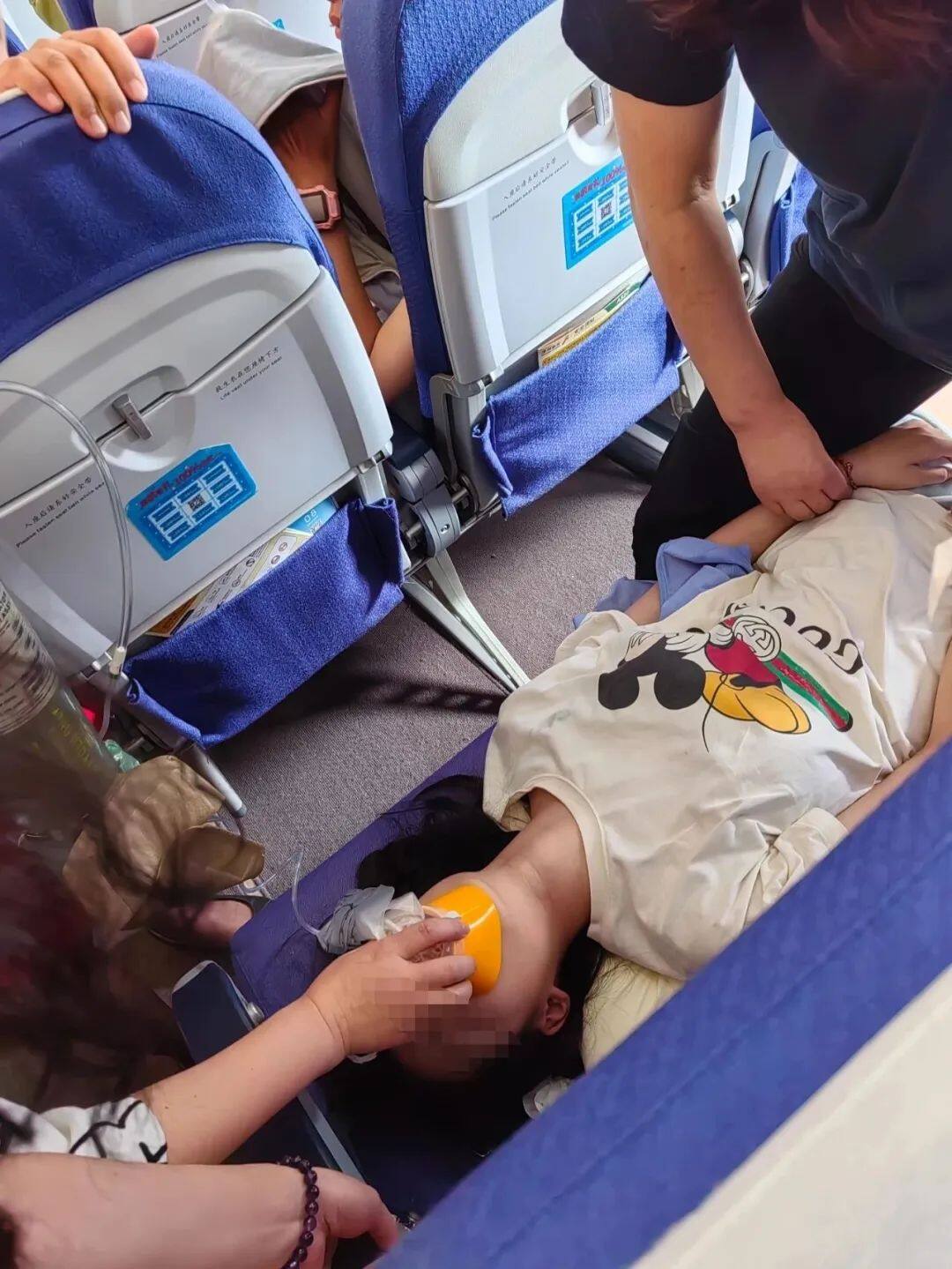 “不好了,快来救人,小姑娘情况不妙!”听到这位女士的呼喊,相隔两排座位的南通大学附属医院的几位护士立马解开安全带,不约而同起身赶到了孩子身边。原来当天上午,通大附院的朱琴、庄园、秦雯、李倩、张海燕等人正好在西安参加完学术会议乘坐同一航班返回南通。