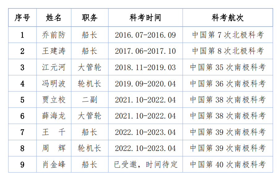 “在学校是教书育人的资深教师,在科考船上是经验丰富的驾驶员和轮机员。”曾参加中国第38次南极科考的贾立校表示,航院“极地科考”教师团队将拳拳赤子之心献给学生和祖国,希望激励全校师生为建设海洋强国、提升我国航海实力作出更大的贡献。