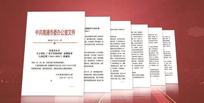 南通市委市政府高度重视“童声里的中国”品牌的提升与发展,中共南通市委办公室2023年1号文件印发《“童声里的中国”品牌提升三年行动计划》,提升行动计划主要涵盖精品打造、扩大传播、阵地建设、深化研究、拓展形式五大块14个方面的任务,以进一步在市级层面加强对“童声里的中国”的组织领导和顶层设计,形成市区联动机制与工作合力。