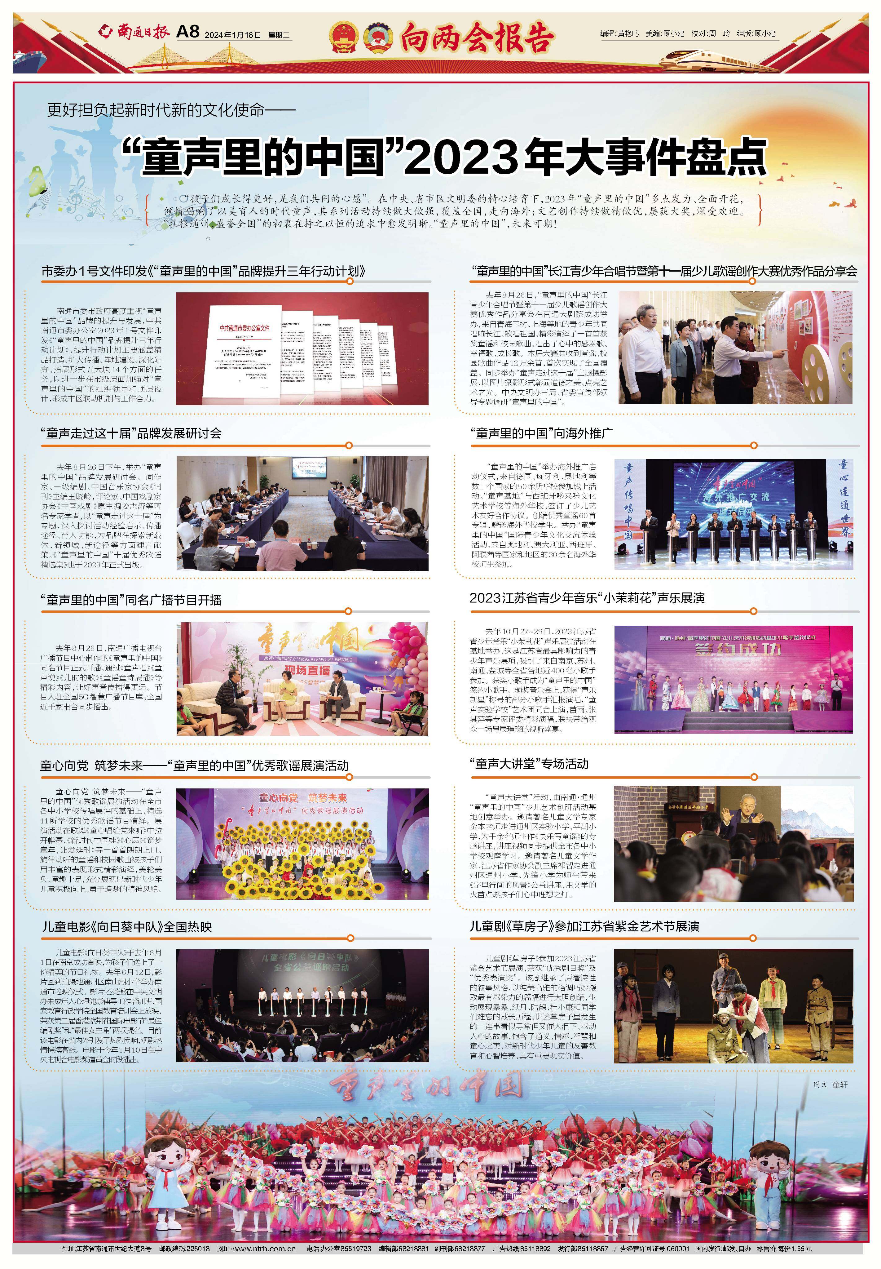 去年8月26日,“童声里的中国”长江青少年合唱节暨第十一届少儿歌谣创作大赛优秀作品分享会在南通大剧院成功举办,来自青海玉树、上海等地的青少年共同唱响长江、歌唱祖国,精彩演绎了一首首获奖童谣和校园歌曲,唱出了心中的感恩歌、幸福歌、成长歌。本届大赛共收到童谣、校园歌曲作品12万余首,首次实现了全国覆盖。同步举办“童声走过这十届”主题摄影展,以图片摄影形式彰显道德之美、点亮艺术之光。中央文明办三局、省委宣传部领导专题调研“童声里的中国”。