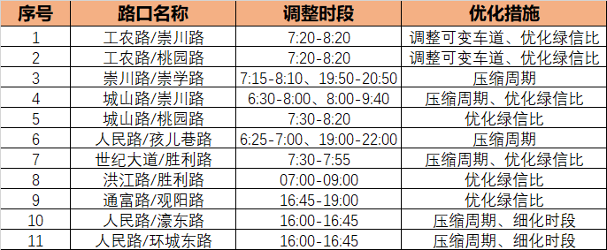 通过全面摸排,市区65所中、小学周边共分布85个信号灯路口。南通交警优化了13条主干道上35个路口和次干道上11个路口的信号配时方案,减少机动车延误。其中,重点调整了工农路崇川路路口等11个交通流量变化较大的学校周边路口,以适应寒假交通流的变化。