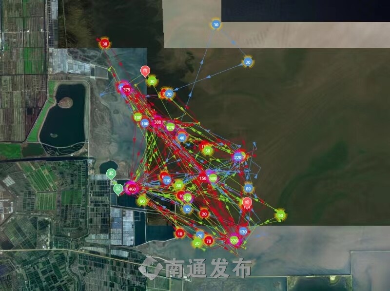 “你看,从1月24日放追踪器后,环志‘99C’已经回传了2000多条记录信息。”8日晚,江苏省南通环境监测中心工程师陈功打开“智能鸟类观测系统”,盯着屏幕上花花绿绿的线条,开始追踪“99c”号蛎鹬的位置、运动轨迹、活动量、体温等,“这几天,它主要在如东东凌滩涂觅食,在通州湾万亩海蜇塘高潮栖息地休息。”
