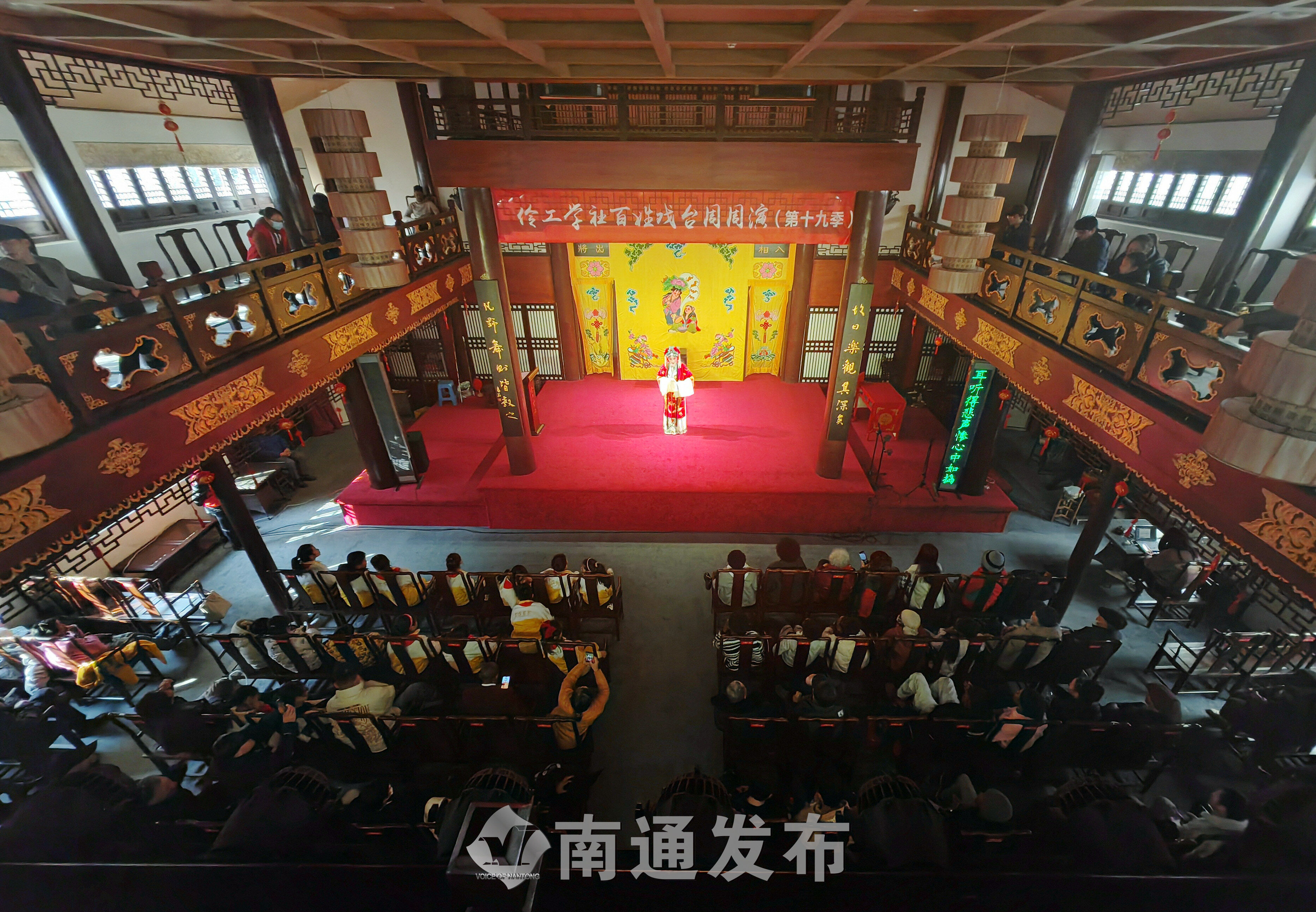 2月11日,由南通市文化馆主办的新春京剧专场演出在伶工学社上演,京剧票友们通过《铡美案》《凤还巢》《穆桂英挂帅》等经典折子戏的表演在新春里为广大戏迷献上了一场免费的文化大餐。