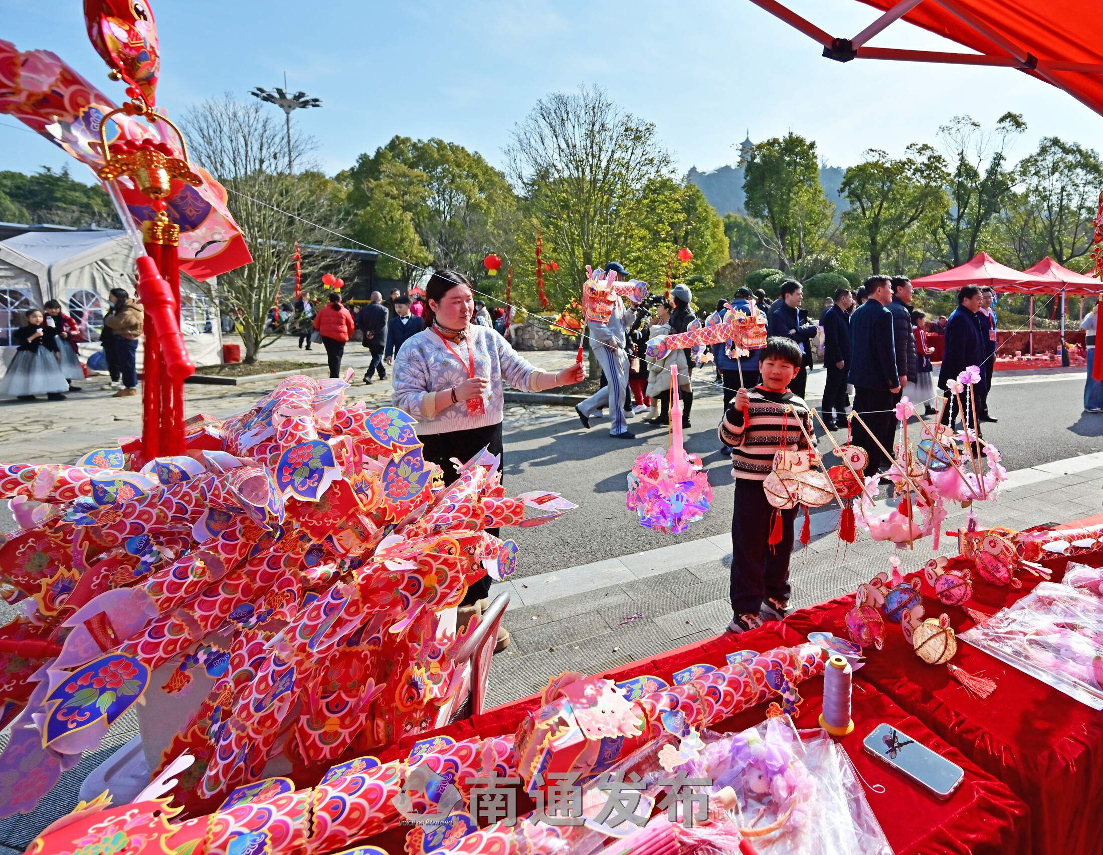 在当天的活动主舞台现场,共有舞龙舞狮、武术、广场舞、杂技、花样篮球等十余个节目亮相。从景区北大门到山门沿途,一路上都有财神、济公和西游记人物进行巡游,给游客随机派发小礼品,为游人增添“年”的趣味。此外,主舞台向南沿线附近,多种多样的商业摊点鳞次栉比,让游客们目不暇接,非遗作品、体育彩票、饮料小吃等商品种类齐全。在国民体质监测和健康义诊现场,市体科所的工作人员悉心为群众讲解、示范和分析各项指标情况,并为群众免费进行体质监测,把健康送到群众身边。在主舞台的南侧由瑞业航空公司提供的直升机腾空盘旋,为游客们提供登机游览服务,让人们可以尽情俯瞰五山片区、滨江全貌,感受南通近年的沧桑巨变。