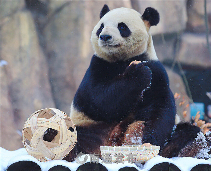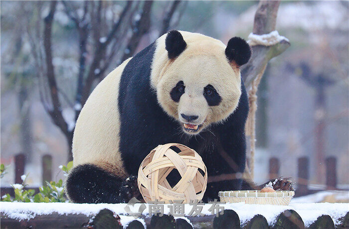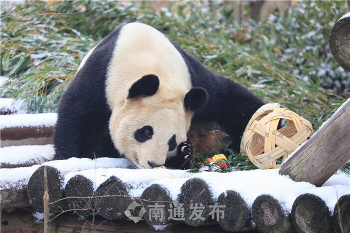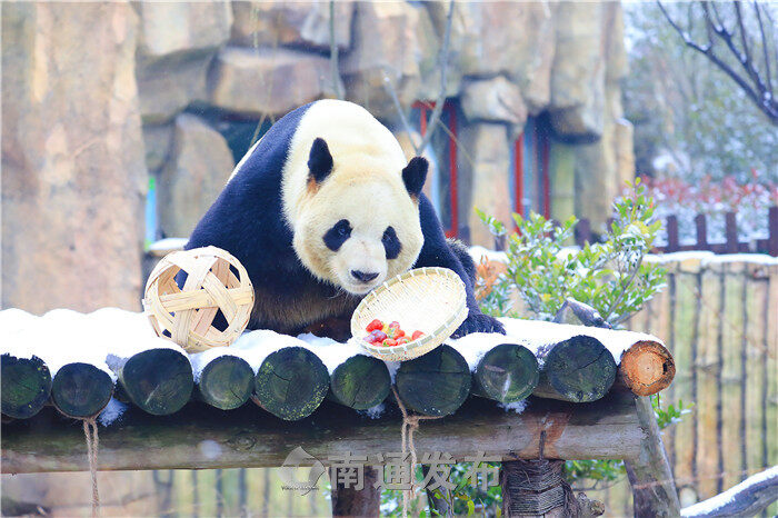 元宵节当天,动物园的奶爸奶妈还精心用草莓、玉米、窝窝头等食物作为“元宵大餐”,让大熊猫的“雪中汤圆”多了一丝香甜。