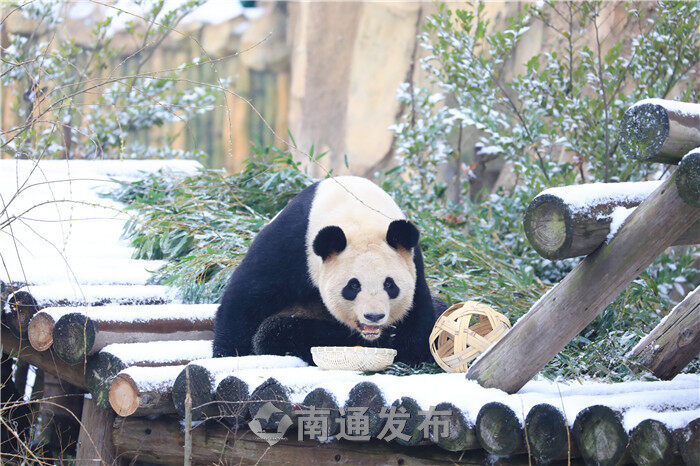 2024年2月24日清晨,一场降雪过后,南通森林野生动物园的龙凤胎大熊猫“星辉“和“星繁”在雪地里嬉戏玩耍,萌态十足。