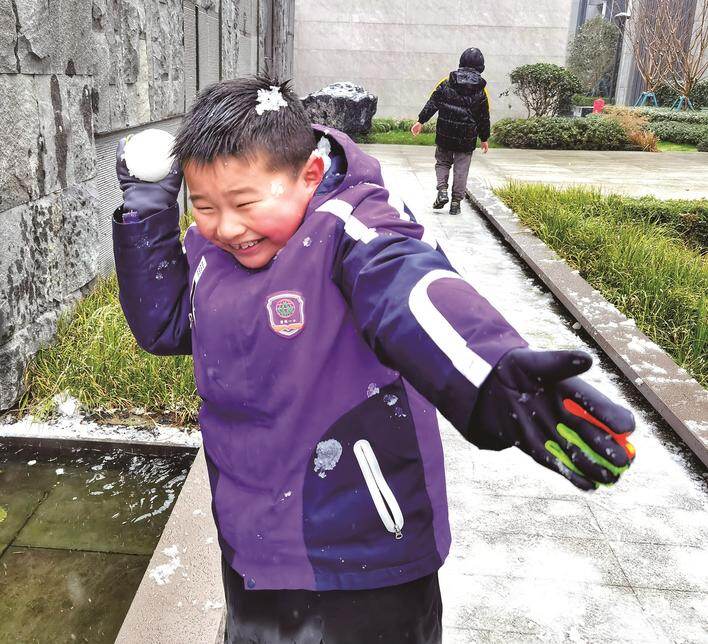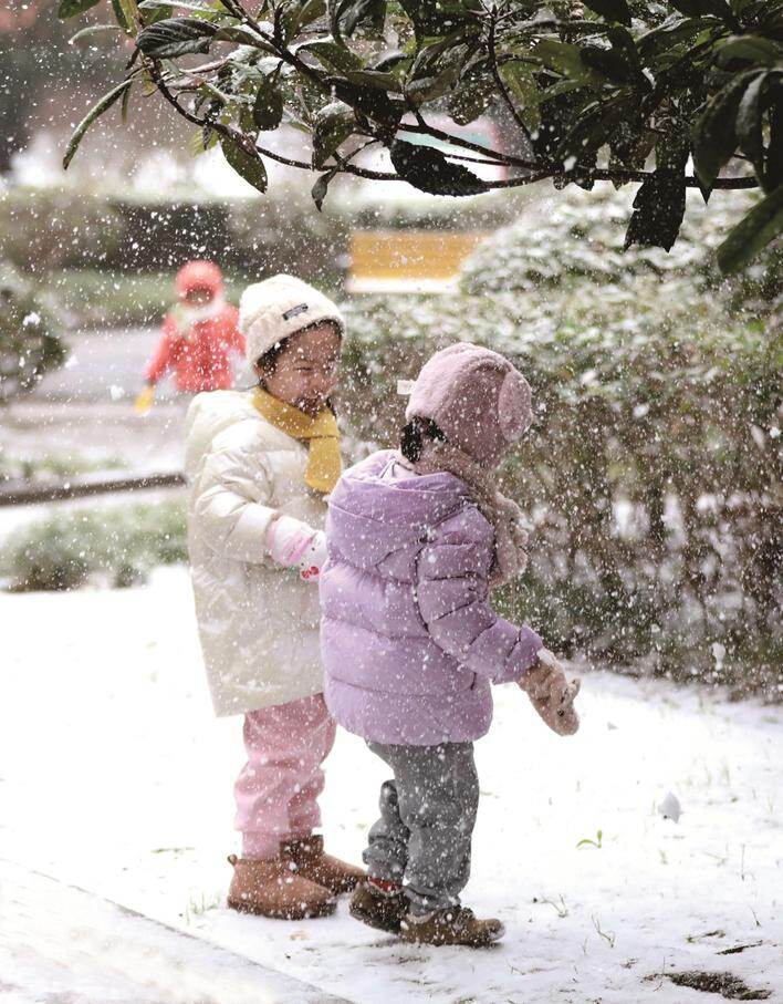 昨天,南通市区恒盛豪庭,孩子们在纷纷扬扬的大雪中玩耍。 袁建