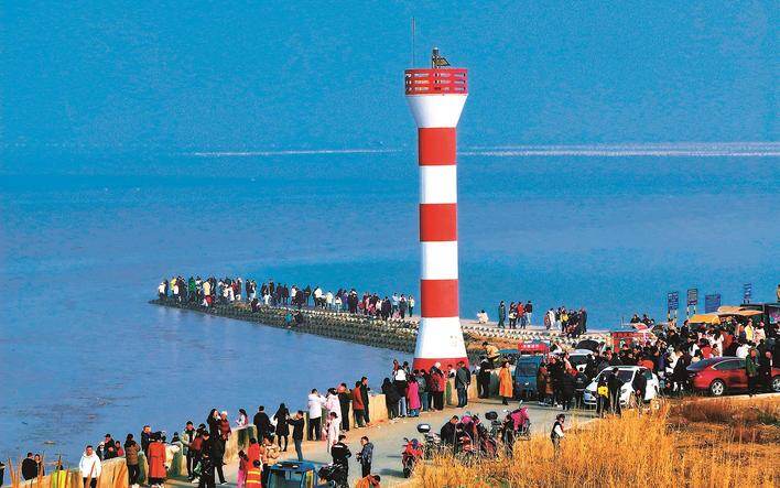 11日,通州湾,游客们在灯塔处看海、拍照、游玩。朱健