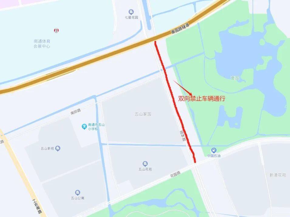 园林路(裤子港河至花园路)双向禁止机动车通行;