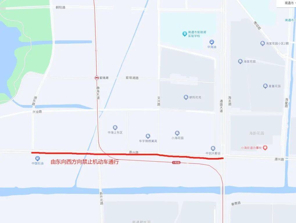 源兴路(通盛大道至湖东路),由东向西方向禁止机动车通行。